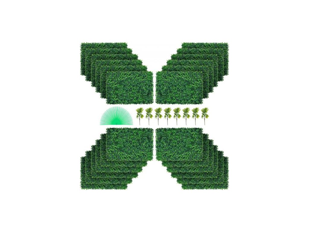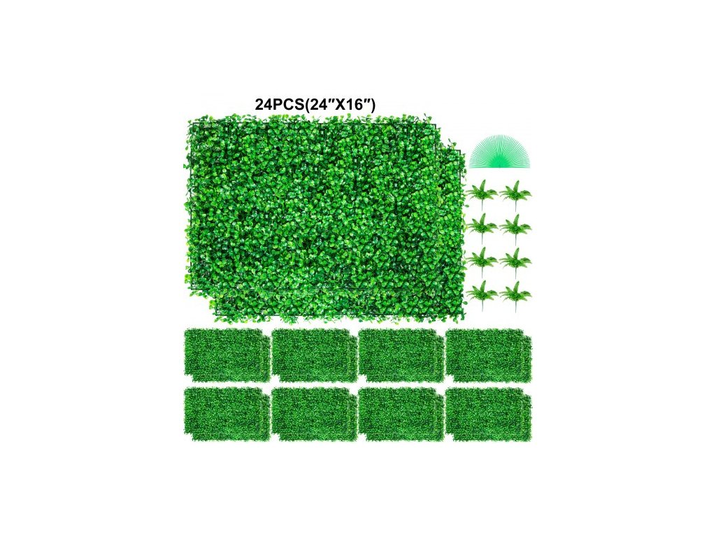 Umělý zimozeleňový panel 24" x 16" UV 24 ks zimozeleňové živé ploty na zeď umělá tráva pozadí zeď 4 cm zelená travnatá zeď, umělý živý plot pro dekoraci soukromí plot vnitřní, venkovní zahrada dvorek
