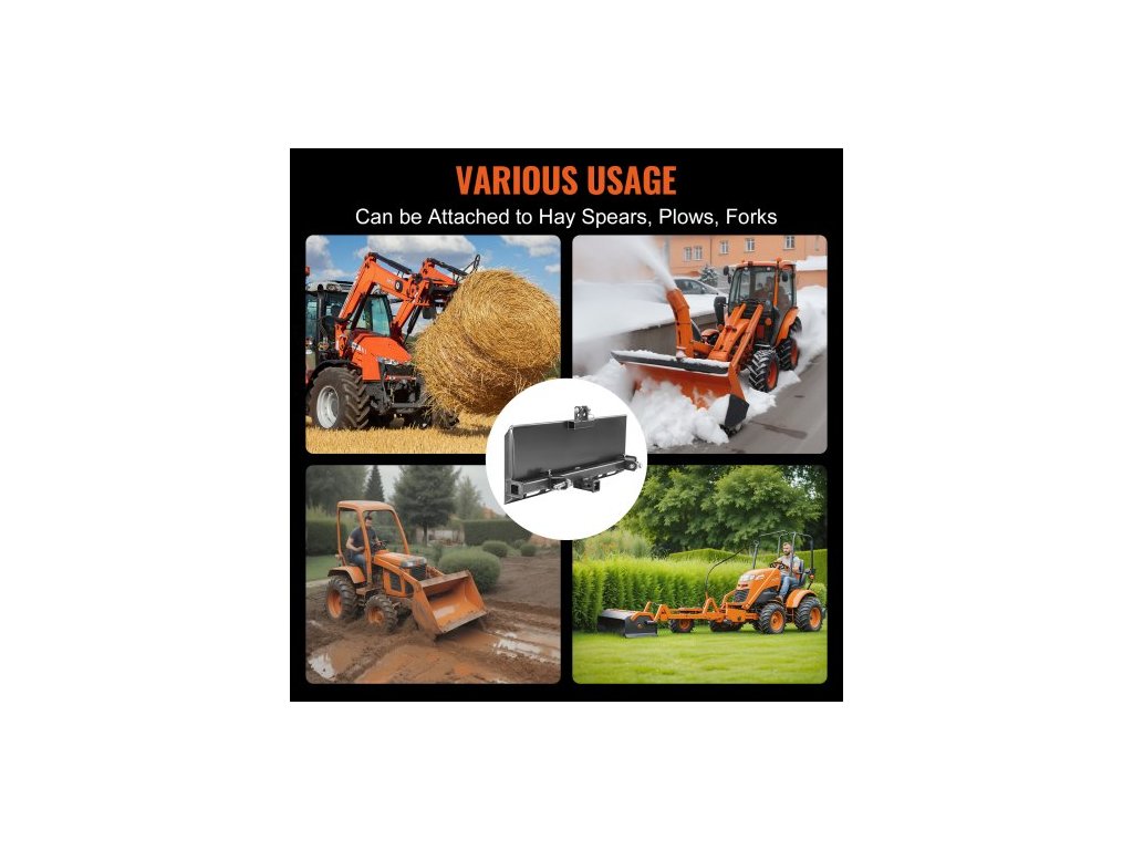 Univerzální 3bodová deska pro smykem řízené nakladače , upevňovací deska pro smykem řízené nakladače 3/8", ocelový adaptér pro nakladač, kompatibilní s smykem řízenými nakladači a traktory Deere, Kubota, Bobcat, Mahindra