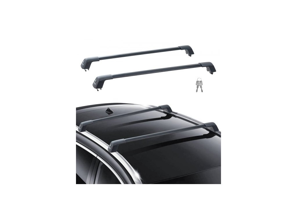Univerzální střešní nosič , hliníkové příčníky, drážkované boční lišty bez mezery, nosnost 90 kg, nastavitelné příčníky se zámky pro SUV, sedan, dodávku