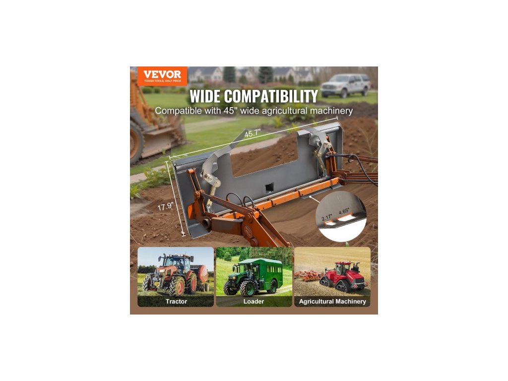 Upevňovací deska pro smykem řízený nakladač 1/4", montážní deska pro smykem řízený nakladač s 2,28" závěsným uchycením, rychloupínací deska pro nakladač, kompatibilní s smykem řízenými nakladači a traktory Deere, Kubota, Bobcat, Mahindra