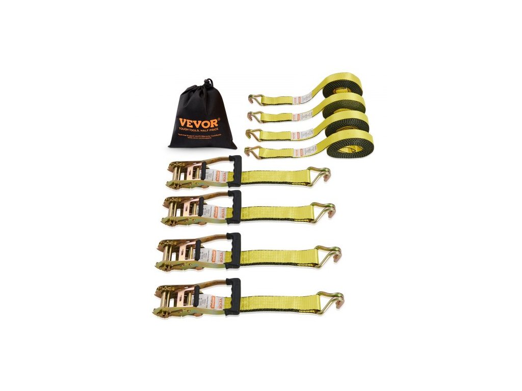 Jmenovitá nosnost: 3333 lb / 1512 kg,Model položky: XMRS50-4,Tloušťka položky: 0,09 palce / 2,2 mm,Materiál háku: Uhlíková ocel 45#,Čistá hmotnost (včetně veškerého příslušenství): 21 lb / 9,5 kg,Mezní pevnost: 10 000 lb / 4536 kg,Povrchová úprava: Barevný zink,Tloušťka háku (průměr): 0,44 palce / ?11,3 mm,Rozměry položky: 2 palce x 27 stop / 0,05 m x 8 m, Množství: 4 kusy, Šířka položky: 2 palce / 50,8 mm, Materiál popruhu: Polyester