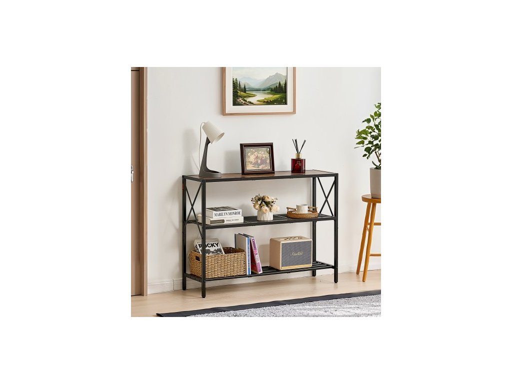 Počet vrstev: 3 vrstvy,Nosnost: 100 lbs / 45,3 kg,Podnožky: Nastavitelné podnožky,Barva: Hnědá + černá,Číslo modelu položky: YJXXGZ-006,Materiál rámu: Čtvercová trubka z uhlíkové oceli,Rozměry police: 13,3 x 10,0 x 0,5 palce / 33,8 x 25,3 x 1,2 cm,Rozměry čtvercové trubky rámu: 0,8 x 0,8 x 0,02 palce / 20 x 20 x 0,6 mm,Rozměry výrobku: 41,7 x 11,6 x 28,9 palce / 106 x 29,5 x 73,5 cm,Čistá hmotnost: 17,9 lbs / 8,1 kg,Materiál police: MDF s melaminovou dýhou