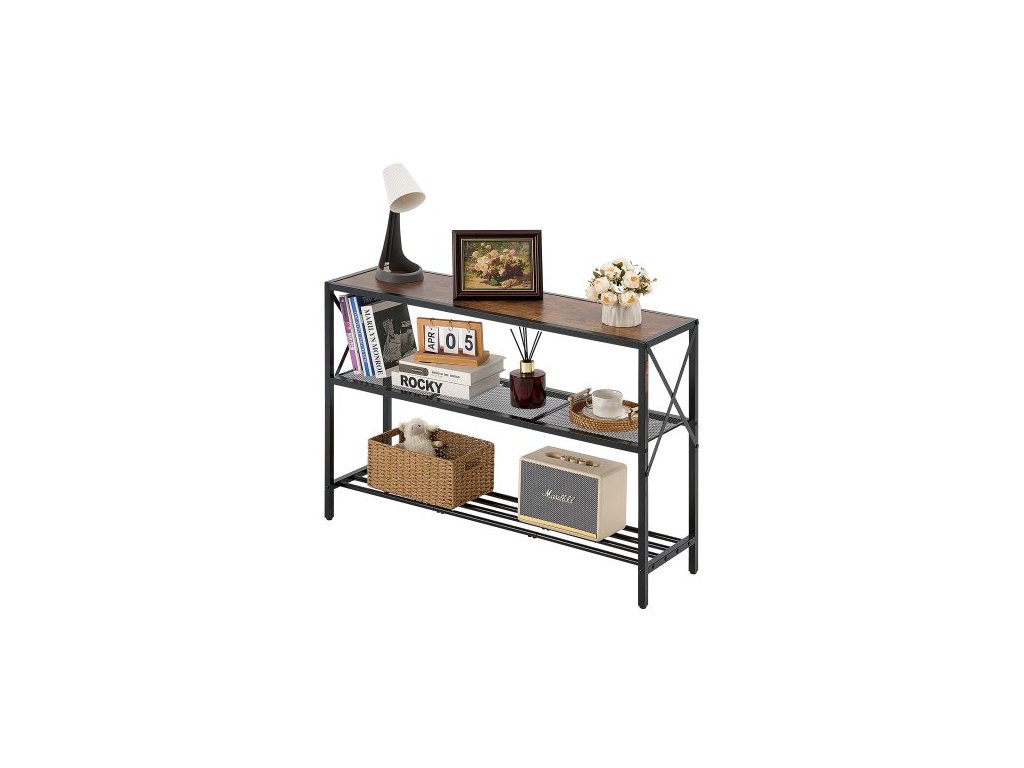 Úzký konzolový stolek k pohovkě , 41,7 palce za pohovkou, 3patrový dlouhý předsíňový stolek a úzký stolek do chodby, úzký stolek k pohovkě s kovovým rámem, do předsíně, chodby, obývacího pokoje a ložnice