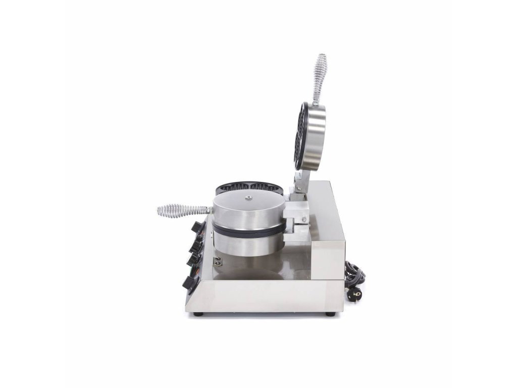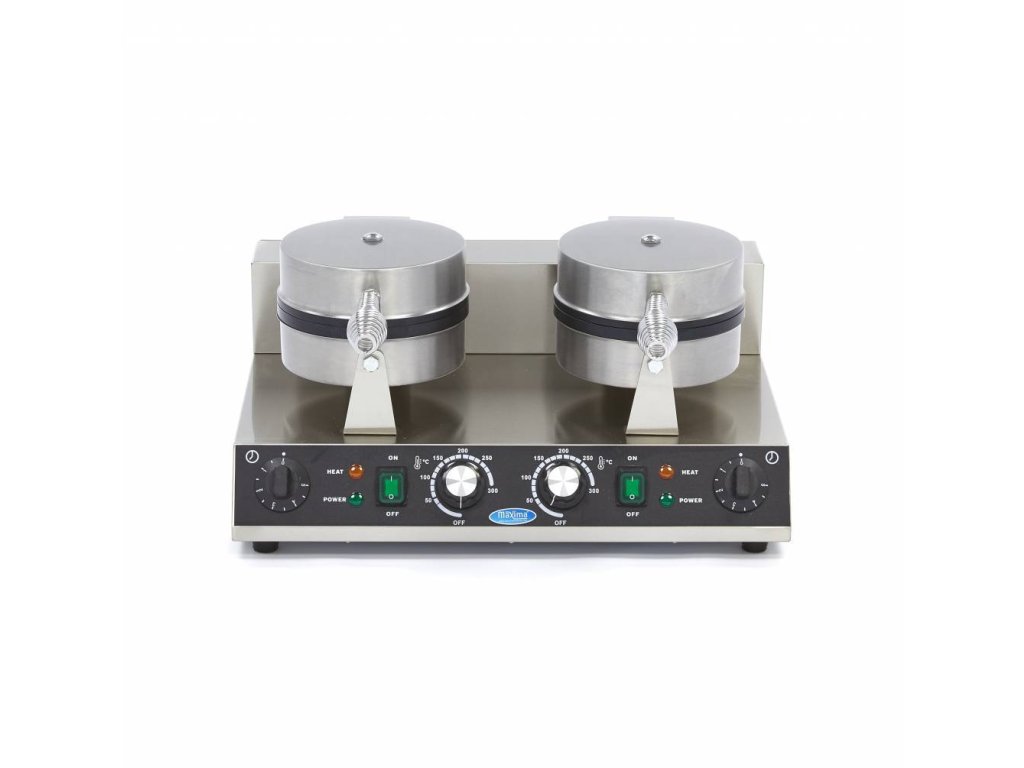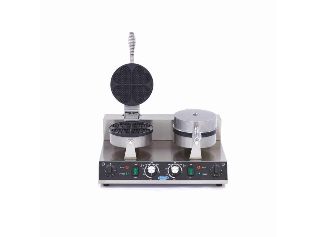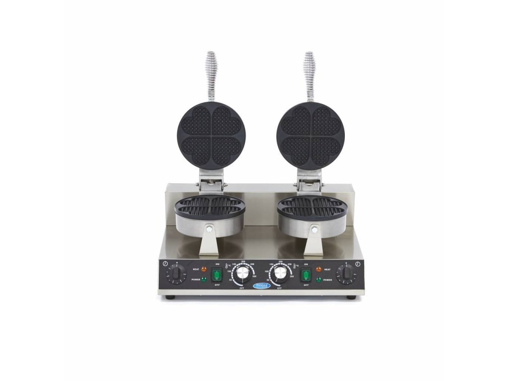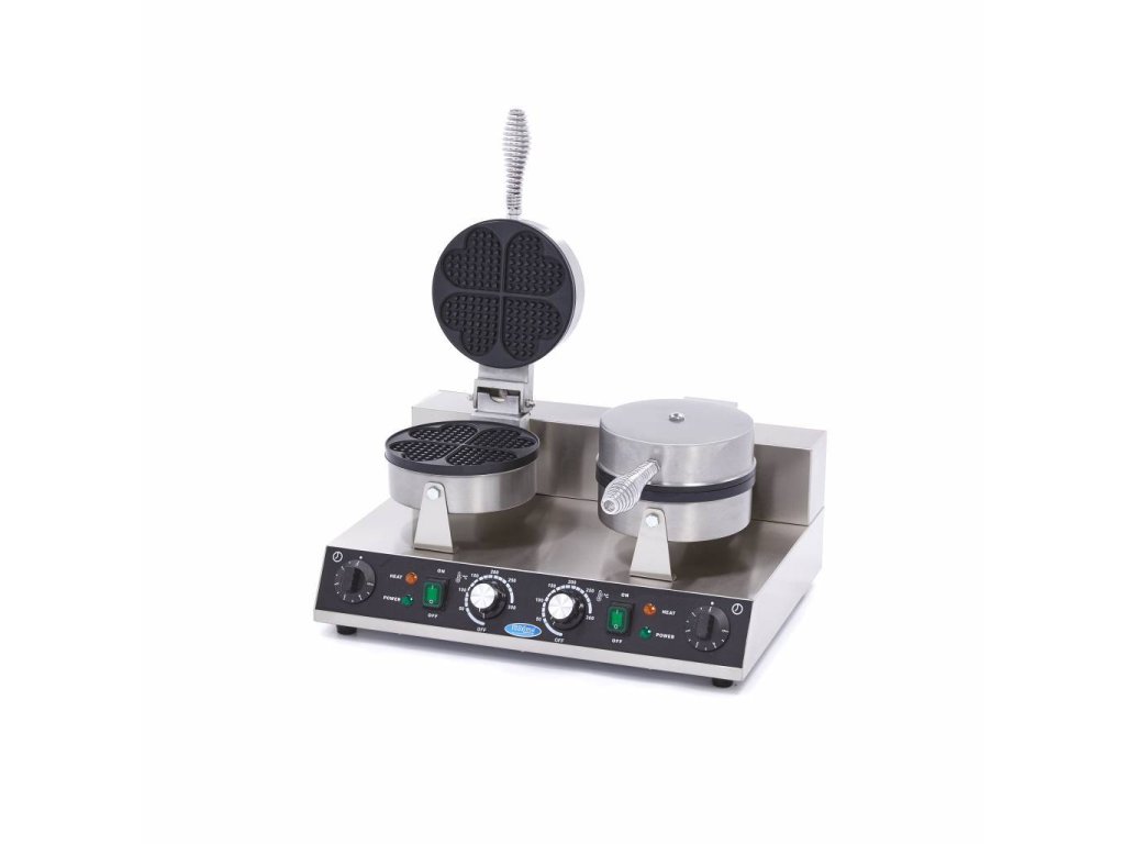 Vaflovač MX Hearts - dvojitý, Vaflovače MX najdete v různých velikostech a tvarech. Tyto přístroje mají výkonné topné těleso, které dokáže rychle zahřát formu a udržet ji horkou, Vysoce výkonný vaflovač pro gastronomii, K dispozici v jednoduchém a dvojitém modelu, K dispozici s tvarem srdce nebo klasickým vaflovým vzorem, Termostatická regulace teploty od 50 - 300 ?, Litinový plech s nepřilnavým povrchem, Nerezový kryt, Snadno čistitelný povrch, Čistá hmotnost: 11 kg, Rozměry: Š520 x D380 x H270 mm, 230V/50Hz/1Fáze 2x1000 Watt,