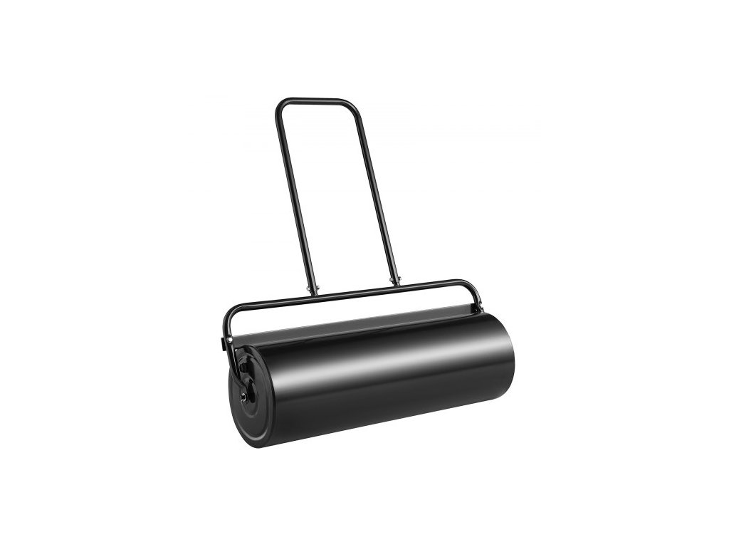 Válec na trávník, 17galonový válec na trávník plněný pískem/vodou, ocelový válec na drny s snadno otočnou zátkou a ergonomickou rukojetí ve tvaru U pro pohodlné tlačení a tahání, pro trávník, zahradu, farmu, park, černý