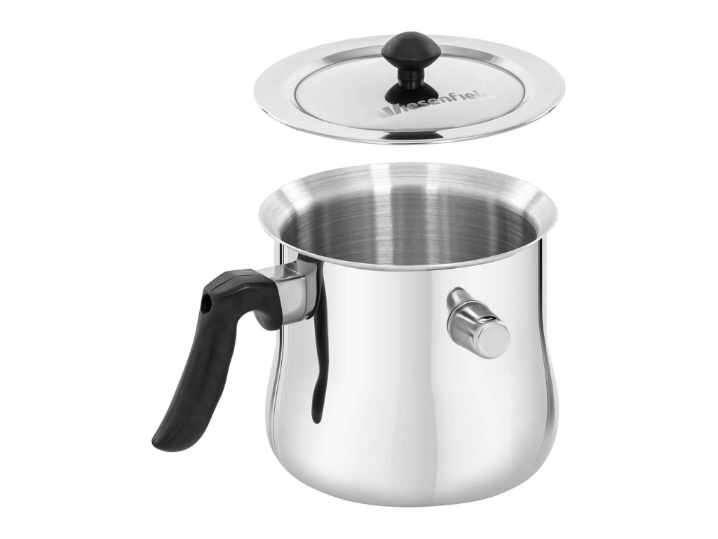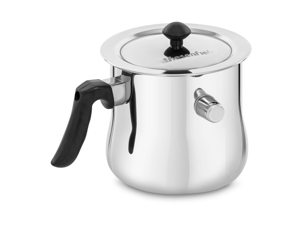 Tavička vosku na včelí produkty je vyrobena z odolné nerezové oceli. Díky tomu je odolný proti korozi, velmi nenáročný na údržbu a vypadá elegantně. Praktická plastová rukojeť usnadňuje práci s horkým obsahem - stačí jedna ruka.