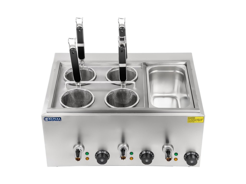 Elektrický hrnec na těstoviny RCNK-4-GN značky Royal Catering je zařízení, díky kterému lze rychle a bezpečně připravit různé druhy těstovin.Je určen pro velké restaurace a provozy rychlého občerstvení. Optimalizuje proces přípravy jídla.
