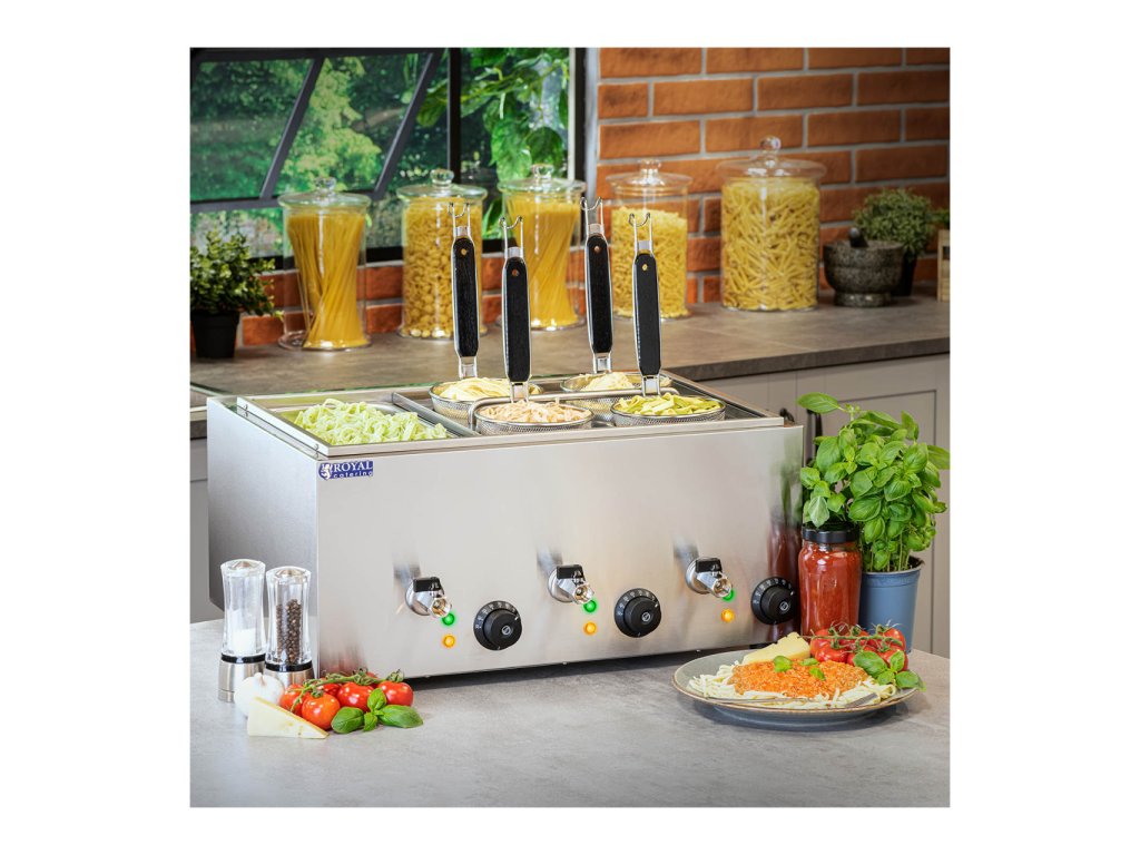 Zařízení zajíšťuje rychlou přípravu všech druhů těstovin: spaghetti, tagliatelle a tortellini. Můžete použít suché, zmrazené a čerstvě připravené těstoviny. Hrnec je vybaven 4 kulatými koši, každý o objemu 0,5 l. Koše se vyznačují strukturou s jemnými oky. Hrnec je vybaven GN nádobou 1/3,která udržuje teplotu omáček.