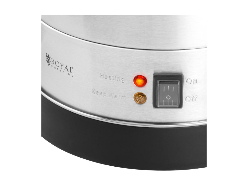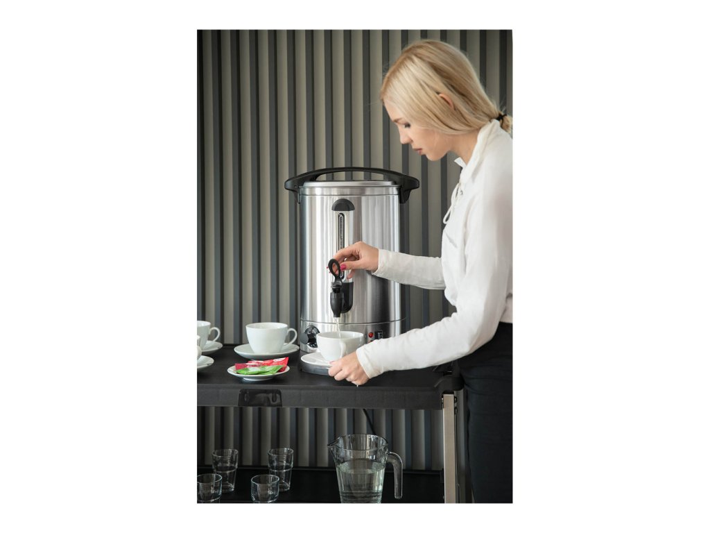 Jako stvořený pro ohřívání – nejen vody! Výkonný varný termos s 2 500 WVarný termos RC-WBDW14 značky RC, odborníka na vysoce kvalitní potřeby pro gastronomii, je ideálním pomocníkem pří ohřívaní a udržování široké škály nápojů v teple. Dvouplášťový varný termos pojme 14,5 l tekutin a je ideální pro použití v restauracích, hotelech a jídelnách, stejně jako na festivalech nebo vánočních trzích.Dokonalé udržování teploty s dávkovačem horké vody značky RCDíky výkonu 2 500 W termos s přesným termostatem rychle ohřívá nápoje na teploty mezi 30 a 110 °C. Tento teplotní rozsah lze plynule nastavovat pomocí otočného ovladače. Díky praktické funkci udržování teploty jsou nápoje vždy připraveny k podávání při teplotě zvolené pomocí otočného regulátoru. Dvě kontrolky ukazují stav funkce topení nebo udržování teploty. Díky okénku můžete vždy vidět, kdy je třeba doplnit tekutiny, aniž byste museli otevírat nádobu.A pokud nemáte chuť na horkou vodu, jednoduše použijte termos k ohřívaní kávy, kakaa, čaje nebo svařeného vína. Dvouplášťová konstrukce vařiče na svařené víno se díky své izolaci ukazuje jako obzvláště energeticky efektivní. Další výhodou je, že díky dvojité stěně si svou teplotu udrží také studené nápoje a lze je přesně dávkovat pomocí kohoutku.Aby jste si nespálili prsty, má termos z ušlechtilé oceli po stranách tepelně izolovaná držadla. Robustní víko lze bez rizika zvednout také pomocí širokého držadla, díky čemuž nepřijdete do styku s pláštěm. Termos s velkým otvorem lze naplnit během několika sekund a pomocí aretačního mechanismu znovu vzduchotěsně uzavřít. Pokud je ohřívač vody příliš horký, ochrana proti přehřátí zařízení automaticky vypne.Použité materiály, jako je ušlechtilá ocel bezpečná pro potraviny, jsou nejen velmi hygienické a odolné, ale také nenáročné na údržbu. Vyberte si nyní dávkovač horkých nápojů RC!