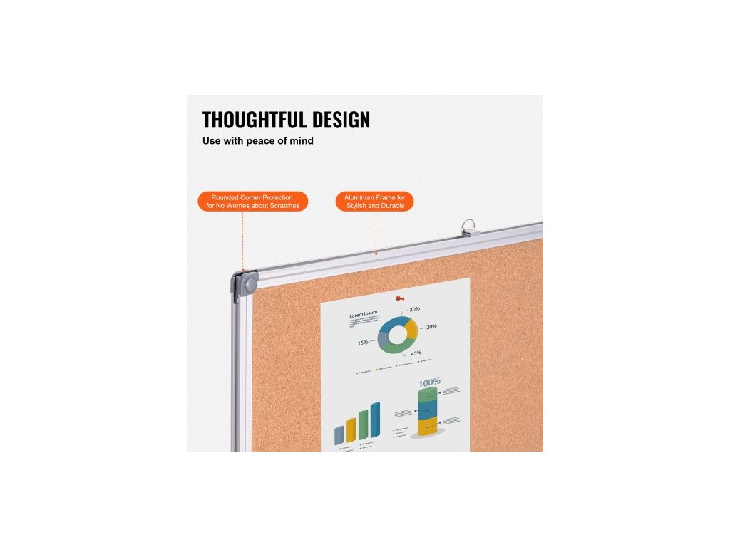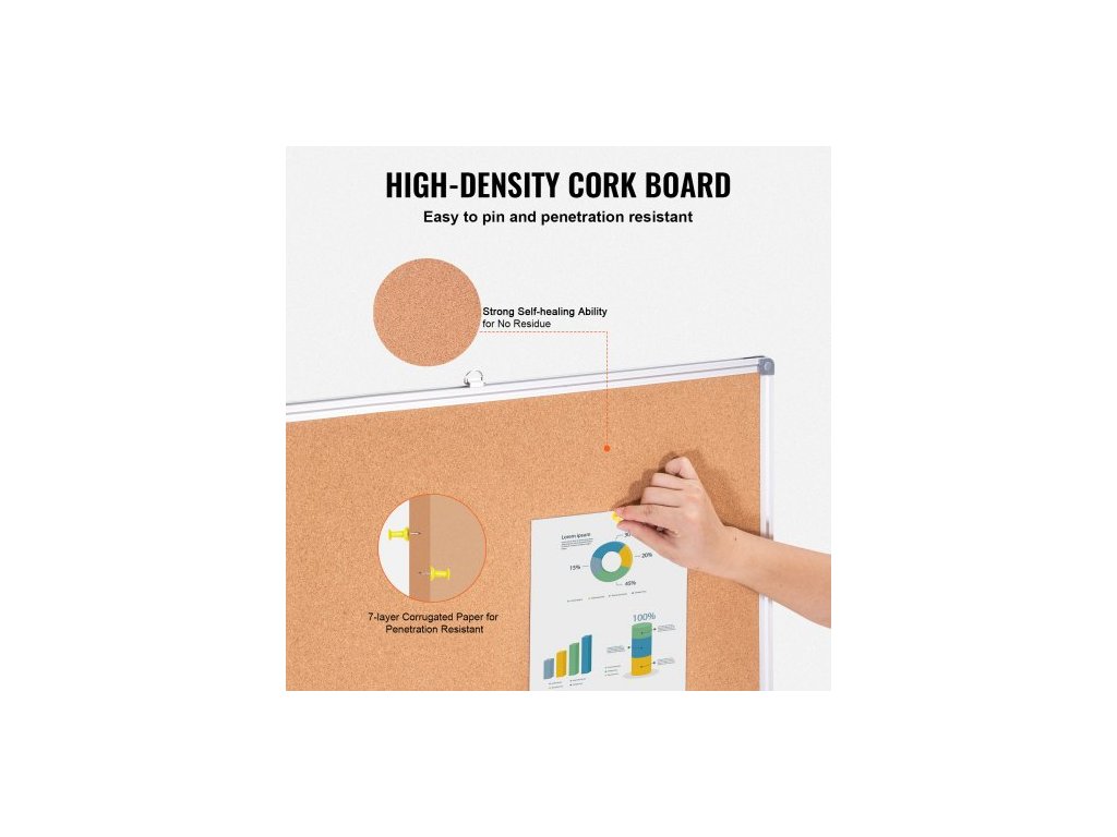 Velká korková nástěnka 48"x36" – Nástěnná nástěnka s nástěnkou – Ideální do školy, domova i kanceláře