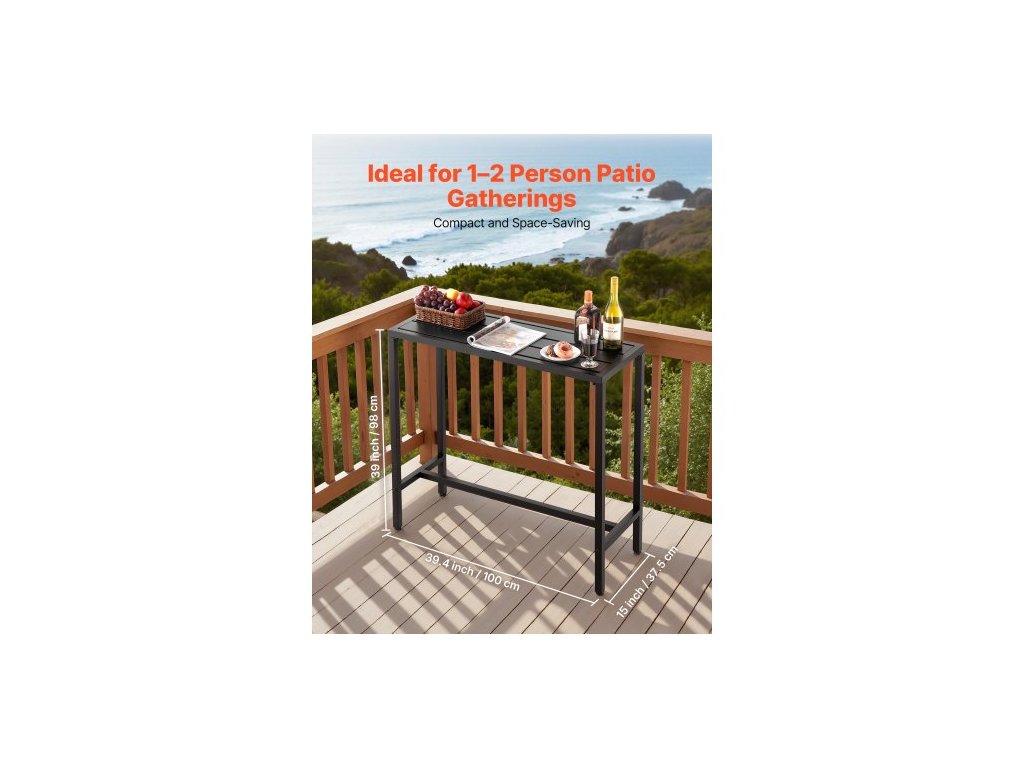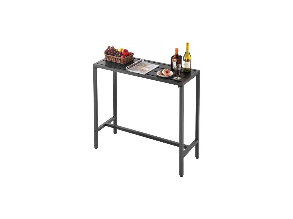 Venkovní barový stůl , 100 x 37,5 cm, zahradní barový stůl, vodotěsná deska a robustní kovový rám, obdélníkový pult, jídelní stoly, venkovní nábytek na balkon, dvůr, vířivku, k bazénu, do interiéru