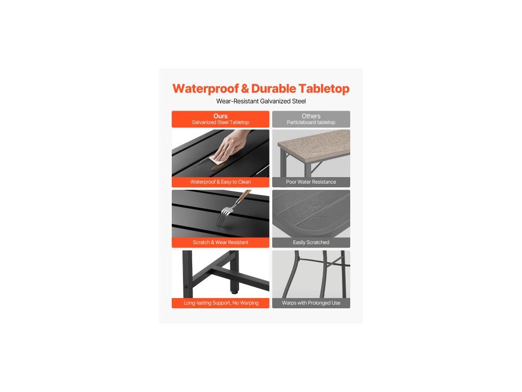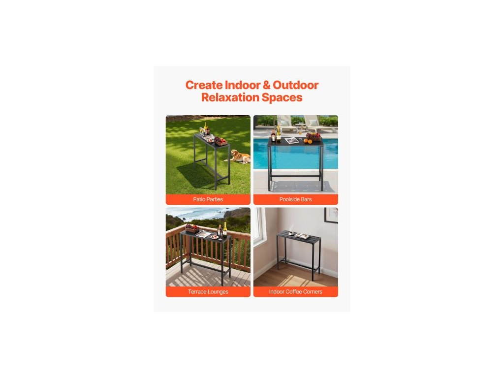 Venkovní barový stůl , 100 x 37,5 cm zahradní barový stůl, vodotěsná deska a robustní kovový rám, obdélníkové jídelní stoly s výškou pultu, venkovní nábytek na balkon, dvůr, vířivku, k bazénu, do interiéru