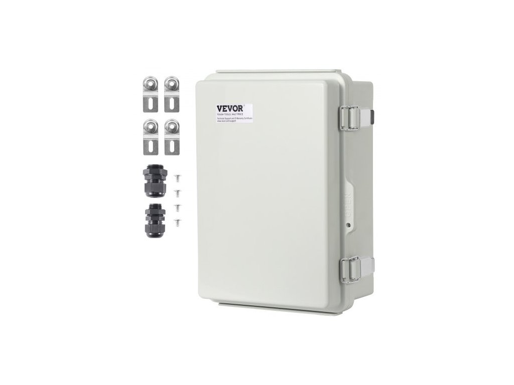Venkovní elektrická rozvodná krabice , 300 x 200 x 180 mm, ABS plastová elektrická krabice s výklopným krytem, západka z nerezové oceli, krytí IP67, prachotěsná, vodotěsná pro venkovní elektrické projekty