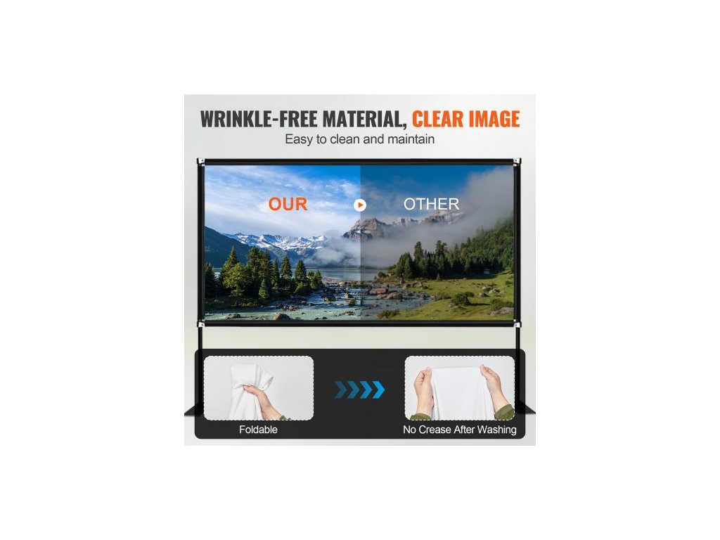 Venkovní filmové plátno se stojanem, přenosné filmové plátno 150", širokoúhlé venkovní projekční plátno 16:9 HD, přední a zadní projekce, s úložným vakem a stojanem pro kancelářské, domácí kino, venkovní a vnitřní použití