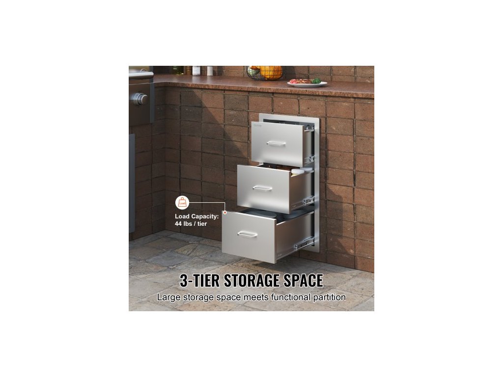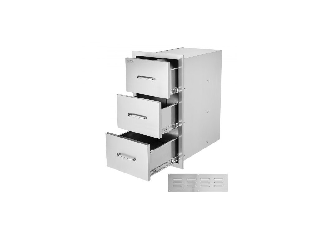 Venkovní kuchyňské zásuvky 42,5 cm Š x 72,5 cm V x 51,7 cm H, Zapuštěné zásuvky na gril s trojitým přístupem z nerezové oceli s rukojetí, zásuvky na grilovací ostrůvek pro venkovní kuchyně nebo zahradní grilovací stanici