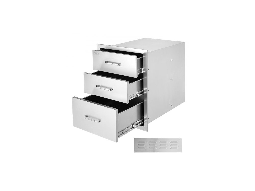 Venkovní kuchyňské zásuvky z nerezové oceli s trojitým přístupem a chromovanou rukojetí, 18 x 23 x 23 palců