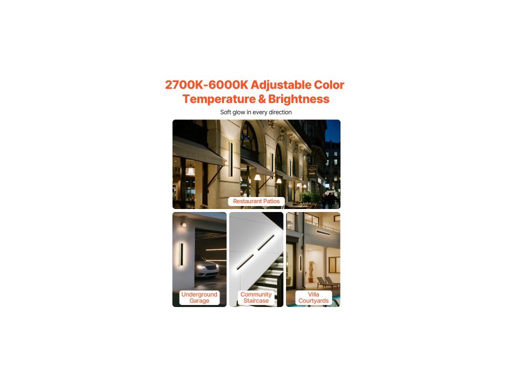 Venkovní nástěnná svítidla , balení 2 ks, 600 mm dlouhý pásek, moderní venkovní nástěnná svítidla, 2700K-6000K, vodotěsná, proti korozi, krytí IP65, stmívatelná venkovní nástěnná montáž, pro verandu a garáž domu