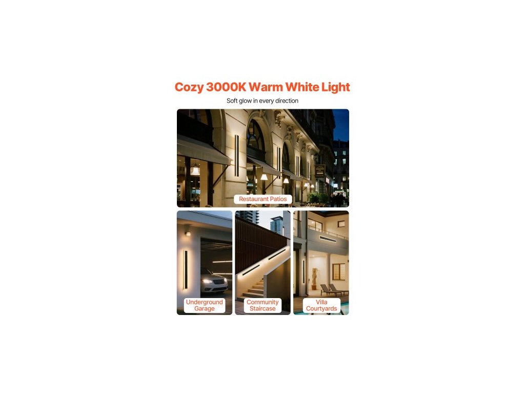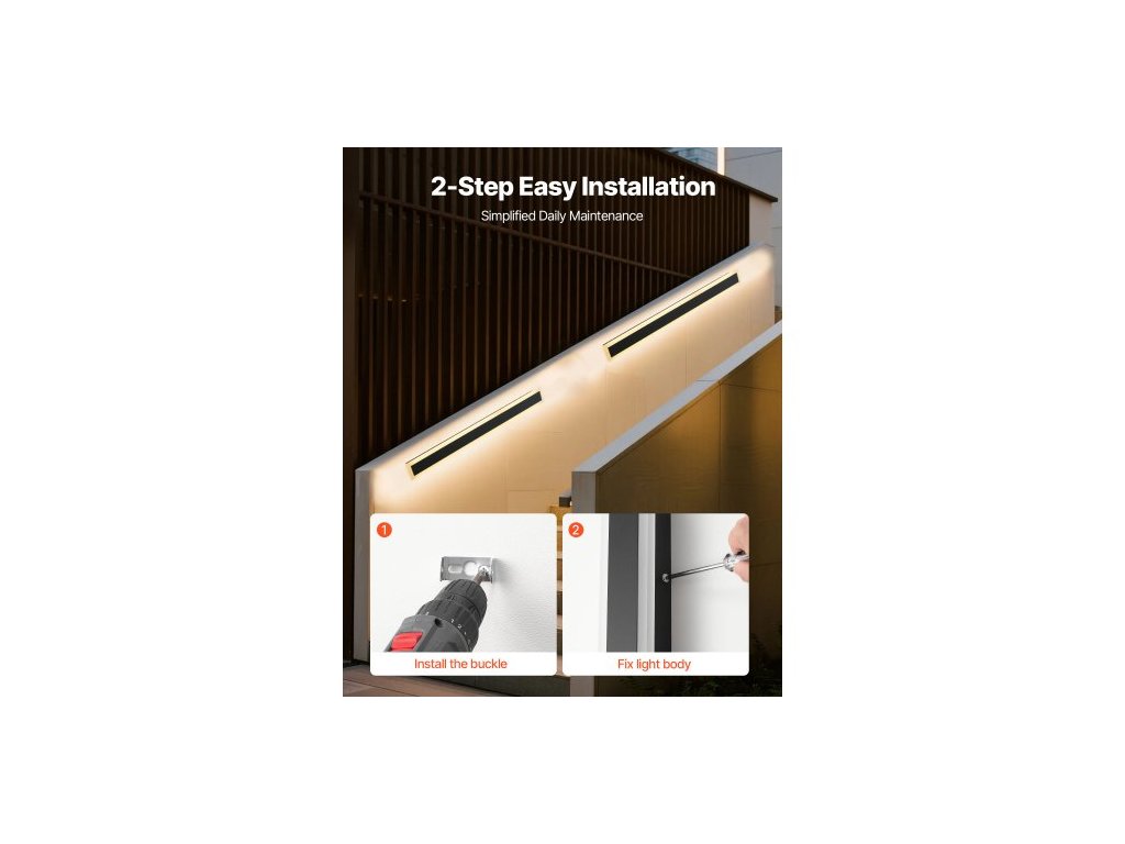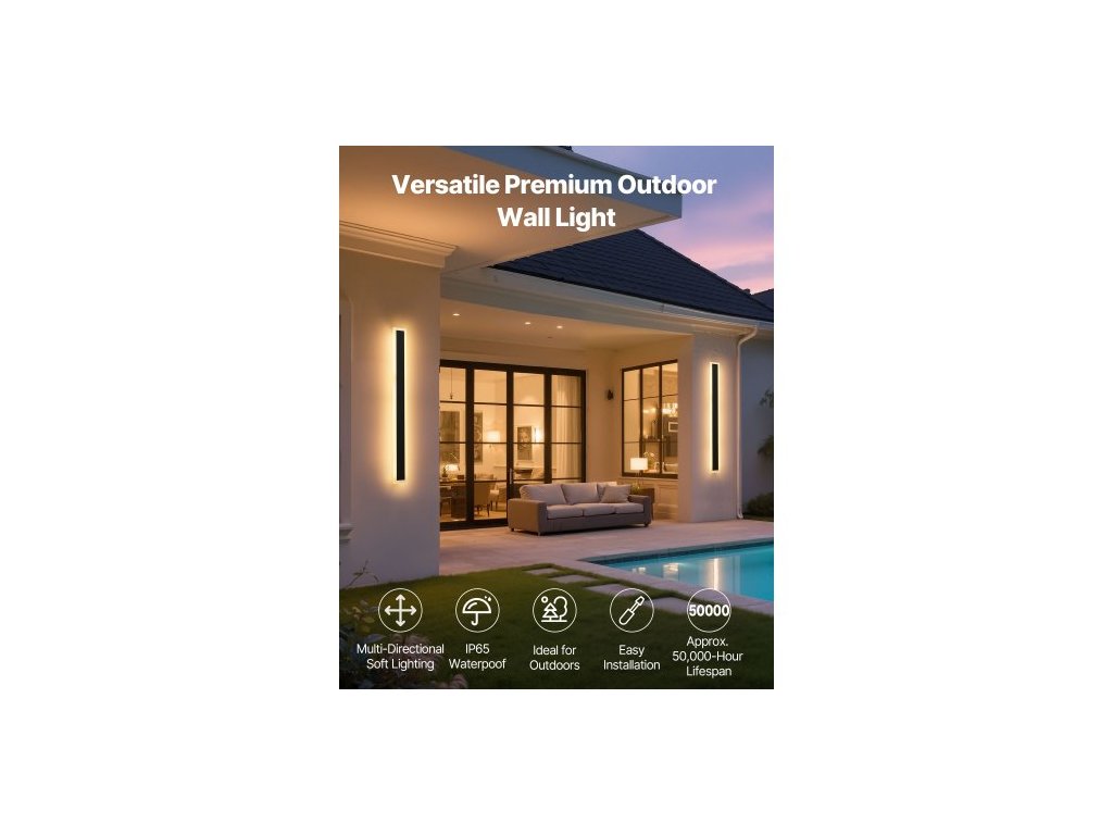 Venkovní nástěnná svítidla , balení 2 ks, 800 mm dlouhý pásek, moderní venkovní nástěnná svítidla, 3000K teplá bílá, vodotěsné, antikorozní, IP65, venkovní nástěnné osvětlení, pro dům, verandu, garáž