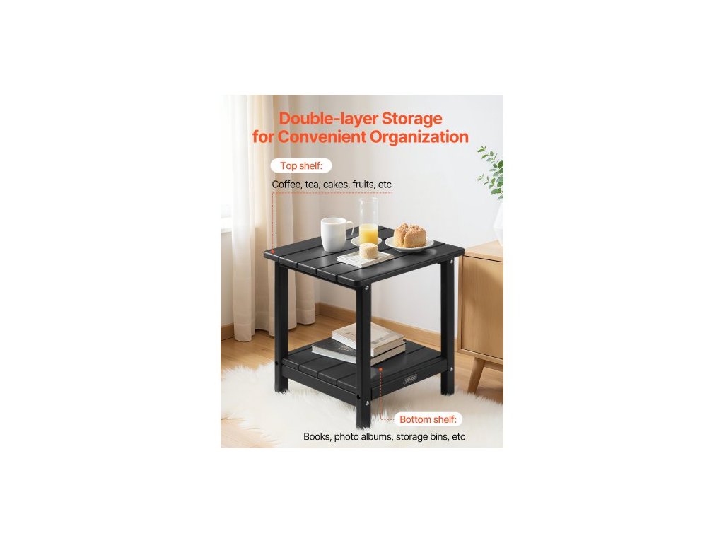 Venkovní odkládací stolek , 450Š x 380H x 440V mm, dvouvrstvý venkovní odkládací stolek z HDPE pro snadnou údržbu, odolává drsnému počasí, vhodný na terasu, k bazénu, na pláž, verandu, do interiéru, na zahradu, černý