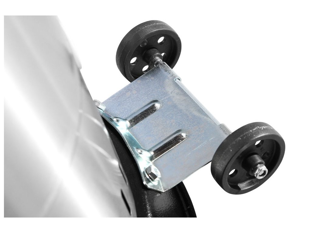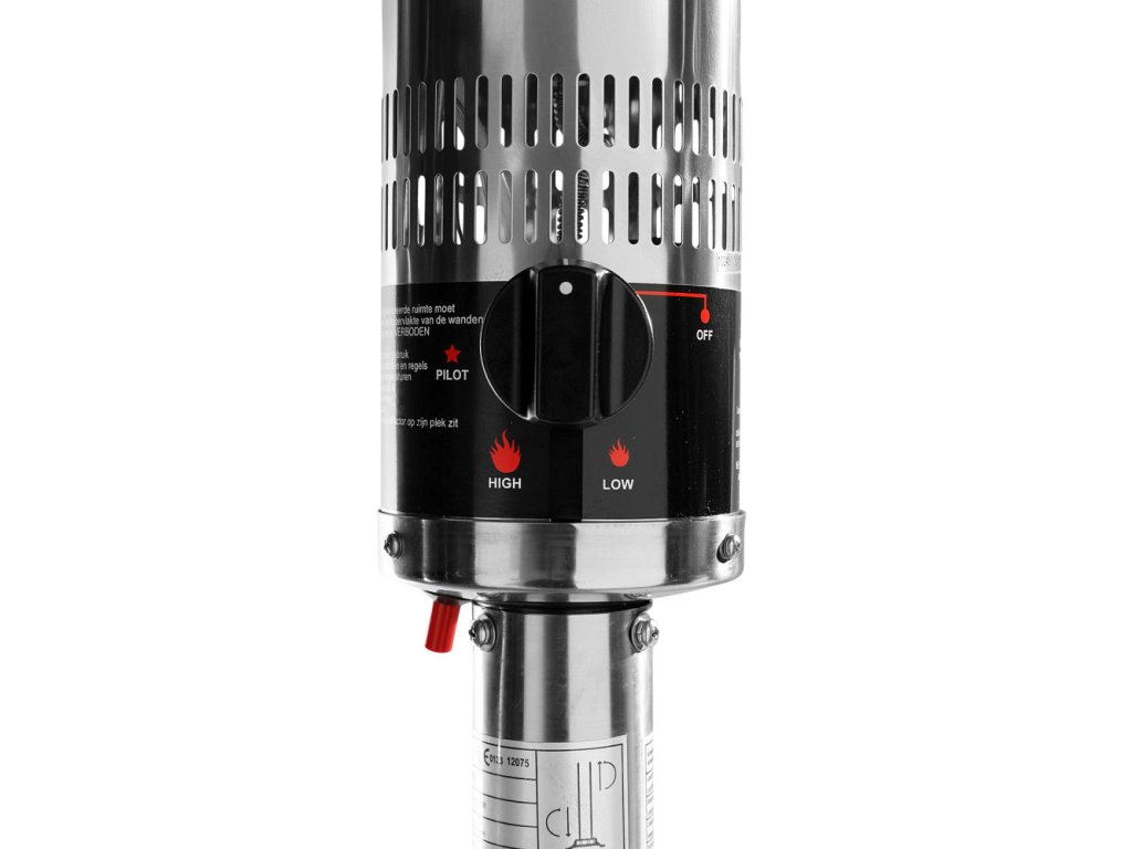 Vhodný na propan nebo butan. Snadno posuvný díky dvěma kolečkům. Včetně elektronického zapalování, plynové hadice a regulátoru tlaku. S ochranou proti pádu. Spotřeba 909 g/h. Hmotnost: 18,8 kg.