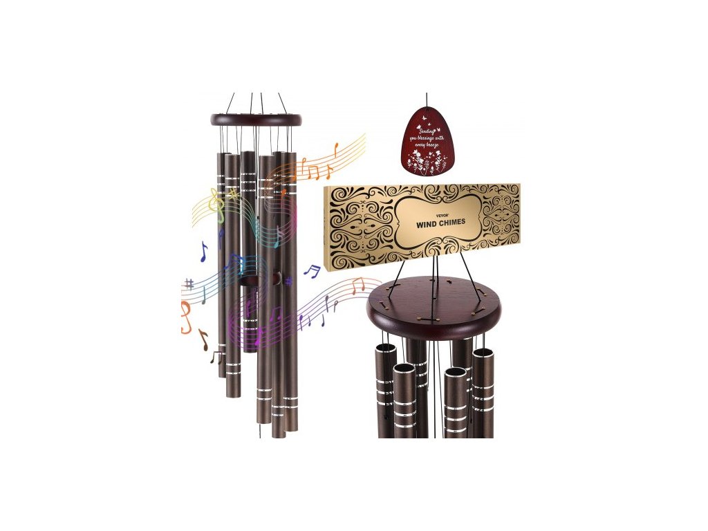 Venkovní zvonkohra , 1067 mm, Zvonkohra v hlubokém tónu se 6 trubicemi, Unikátní velká pamětní zvonkohra k výročí, Elegantní venkovní dekorace pro vaši terasu, verandu, zahradu a dvůr, Tmavě hnědá
