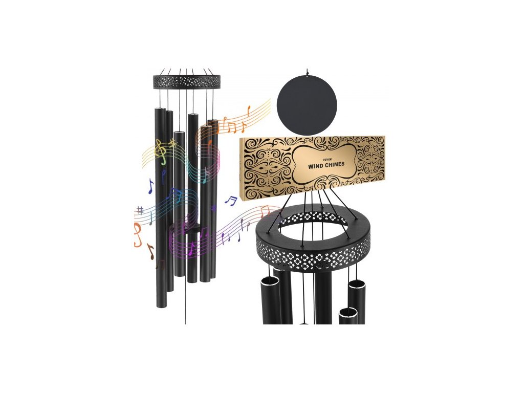 Venkovní zvonkohra , 1473 mm, zvonkohra s hlubokým tónem a 6 trubicemi, unikátní velká pamětní zvonkohra k výročí, úžasná venkovní dekorace pro vaši terasu, verandu, zahradu a dvůr, černá