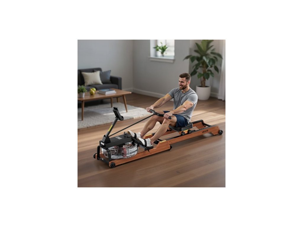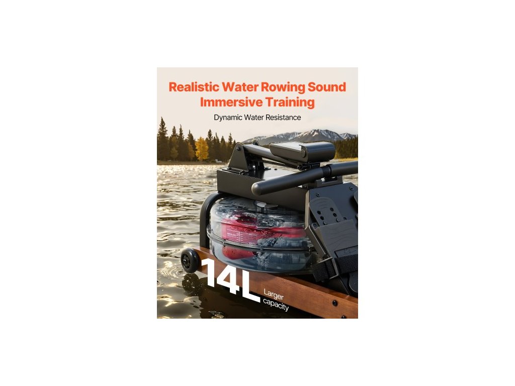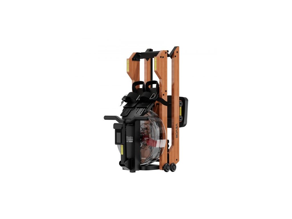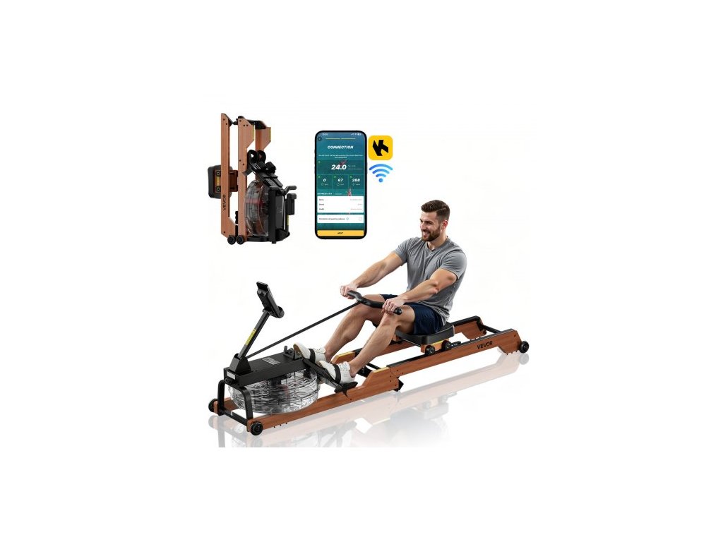 Veslovací trenažér s vodním zátěží, 6 úrovní tichého odporu, skládací dřevěný veslovací trenažér s 14litrovou nádrží na vodu a LCD monitorem, kompatibilní s aplikací Bluetooth, nosnost 158 kg, veslovací trenažéry pro domácí použití