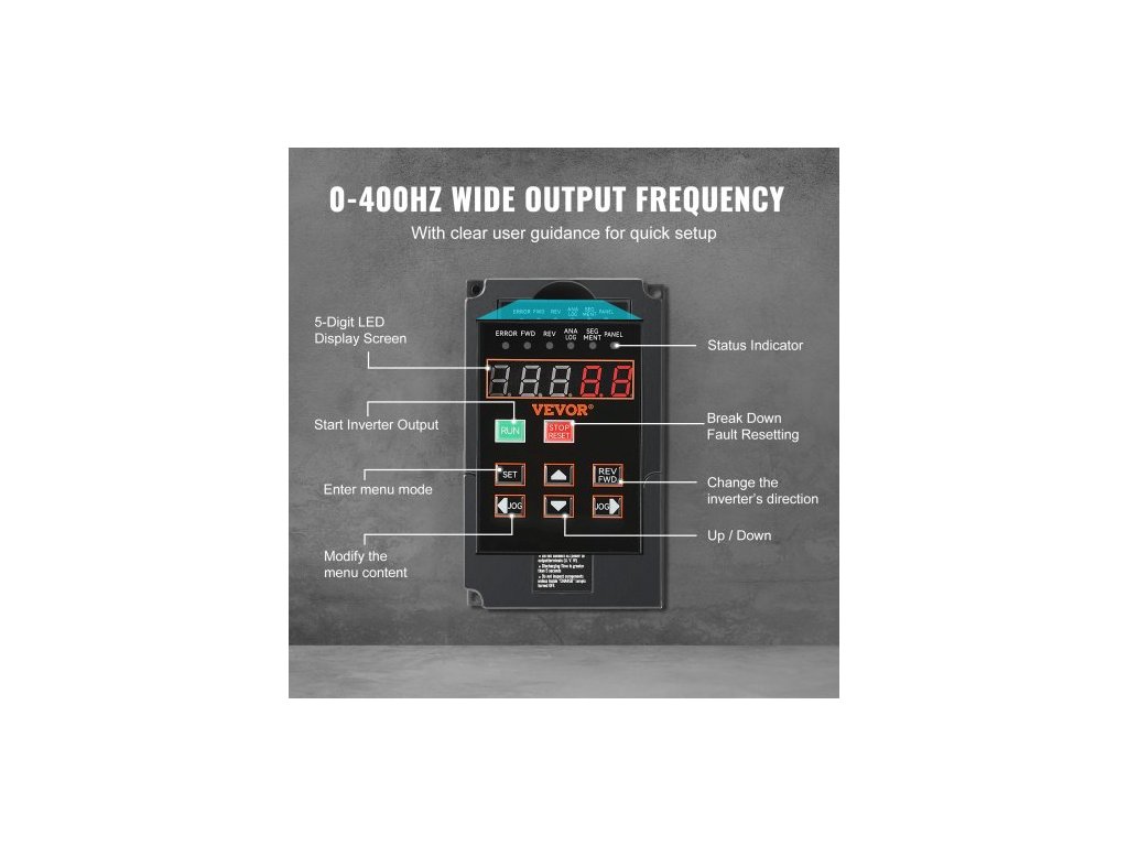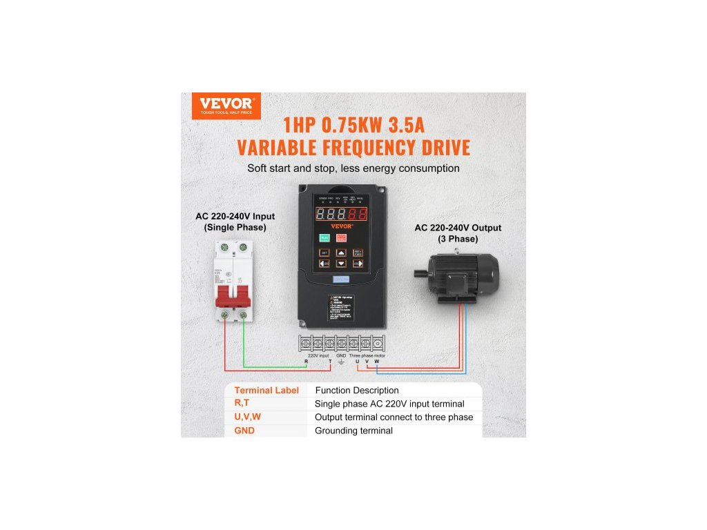 VFD 1HP, 0,75 kW, 3,5 A, 1 nebo 3 fáze 220 V vstup na 3 fáze 220 V výstup, frekvenční měnič, vstup 40–60 Hz, výstup 0–400 Hz, VFD pro vřetenový motor, CNC řízení otáček