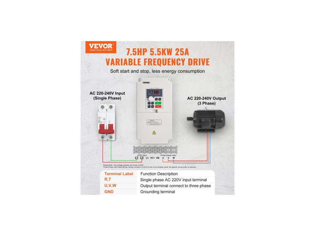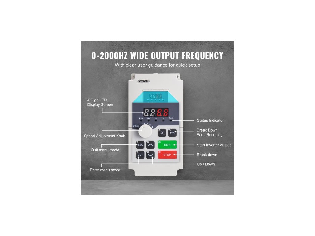 VFD 7,5 HP, 5,5 kW, 25 A, 1 nebo 3 fázový AC 220 V vstup na 3 fázový AC 0~220 V výstup, frekvenční měnič, vstup 50/60 Hz, výstup 0–2000 Hz, VFD pro regulaci otáček vřetena