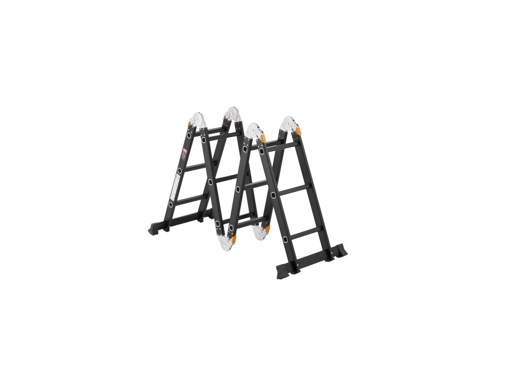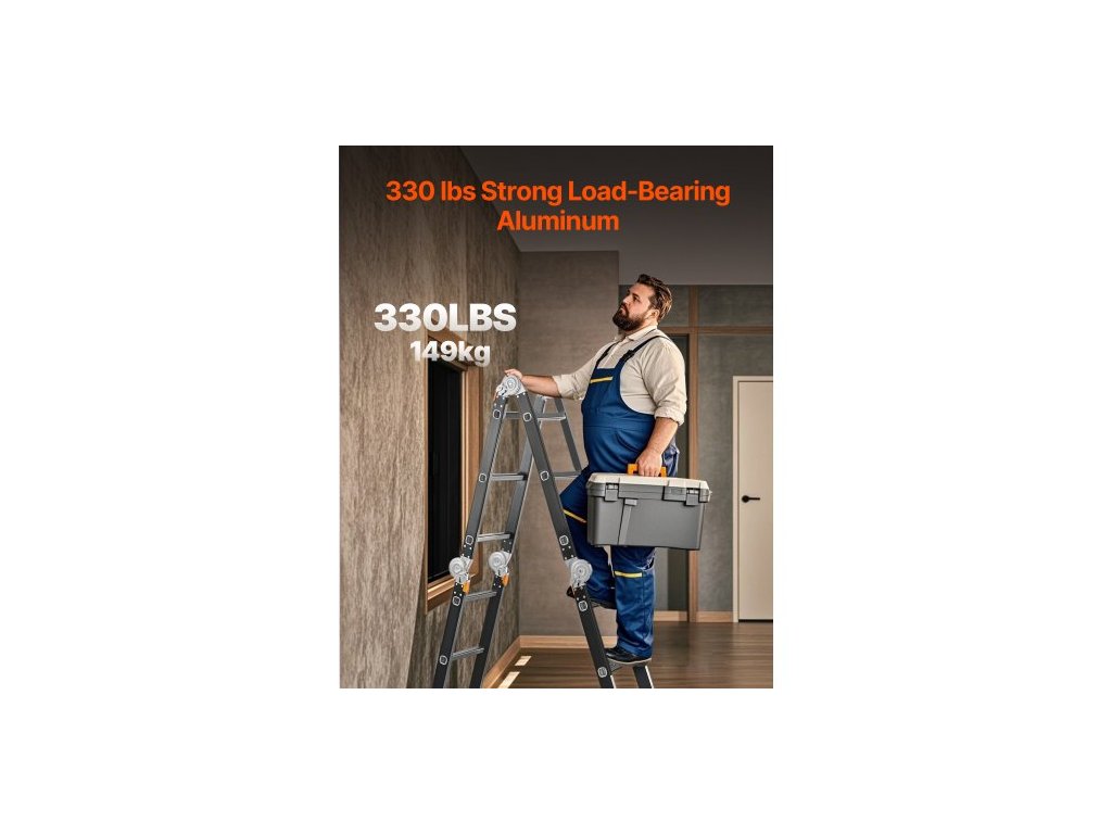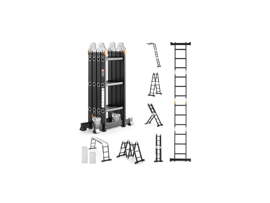 Víceúčelový skládací žebřík , 7v1 vysoký výsuvný žebřík, A-rám, 3 stupně s lešenářskou prknou, teleskopický žebřík, dosah 3,6 m, těžký žebřík, nosnost 150 kg pro domácí a venkovní použití