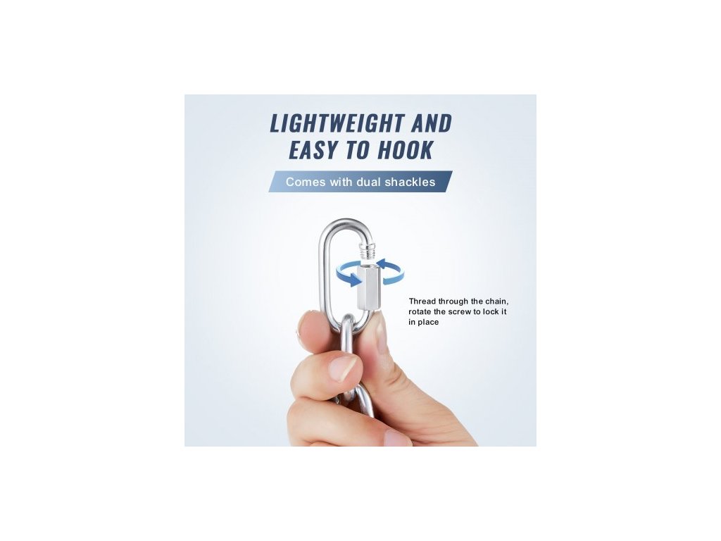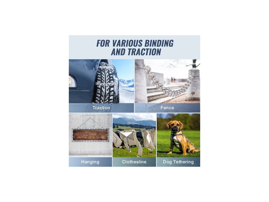Řetěz Proof Coil, 1/8" x 33', bezpečné pracovní zatížení 350 lbs, pozinkovaný, ověřený, spirálový řetěz se dvěma rychločlánky, pozinkovaný řetěz z uhlíkové oceli pro tažení, zavěšení, kempování, tažení domácích mazlíčků