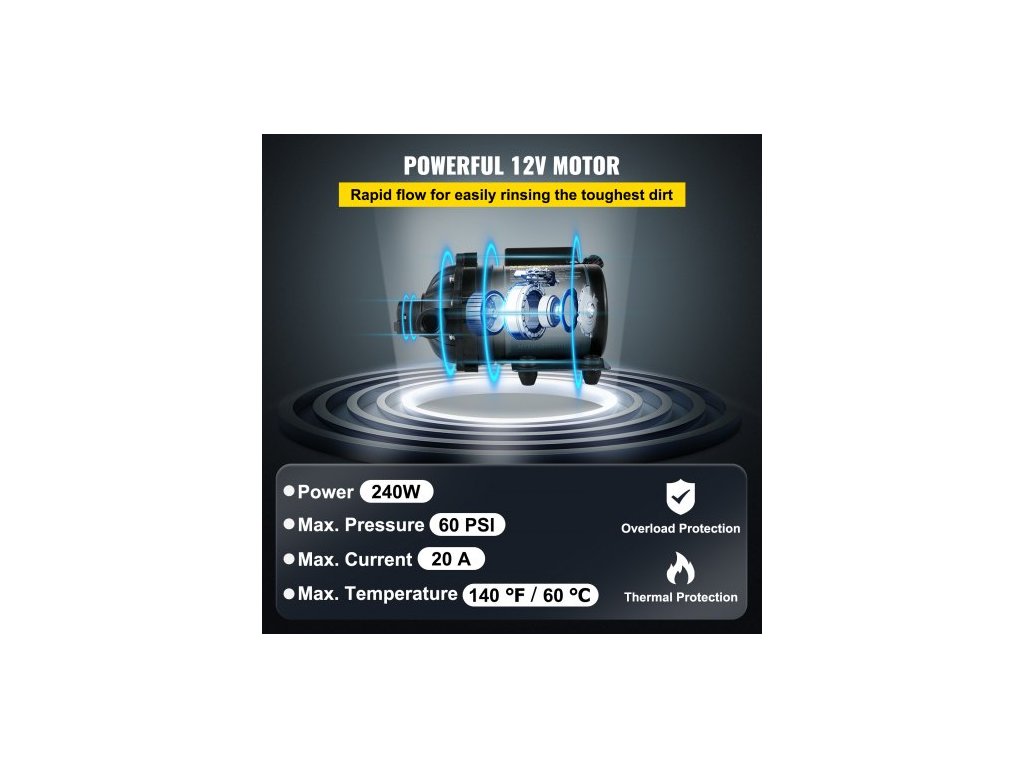 Průtok: 7 GPM, max. teplota: 140 °F / 60 °C, max. proud: 20 A, model: VV-CXB-7GM, max. Zdvih: 3 m, Hmotnost výrobku: 4,7 kg, Materiál skořepiny: ABS, Příkon: 240 W, Rozměry výrobku: 28 x 18,7 x 16 cm
