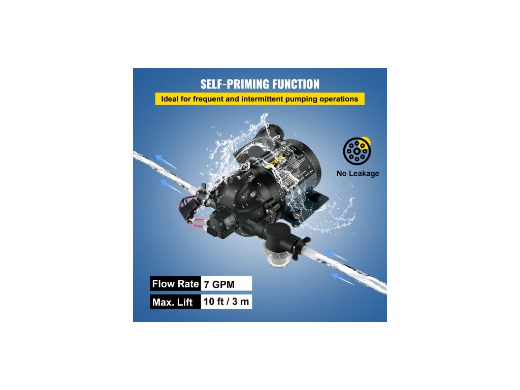 Vodní čerpadlo , 12 V DC, 26 l/min (7 GPM), 4 bary (60 PSI), max. výtlak 3 m (10 FT), samonasávací vodní čerpadlo, s ventilem EPDM, univerzálním sítkem na slanou vodu a vnitřním/vnějším závitem, pro obytné vozy, paluby lodí a jachty