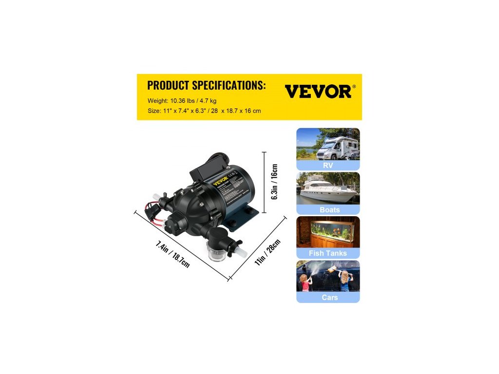 Vodní čerpadlo , 12 V DC, 26 l/min (7 GPM), 4 bary (60 PSI), max. výtlak 3 m (10 FT), samonasávací vodní čerpadlo, s ventilem EPDM, univerzálním sítkem slané vody a vnitřním/vnějším závitem, pro obytné vozy, paluby lodí a jachty