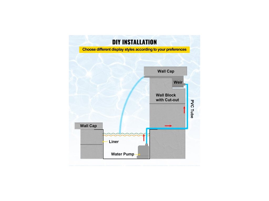 Vodopádová fontána do bazénu, obdélníkové a LED páskové světlo 60 x 11,5 x 8 cm/23,6" x 4,5" x 3,1"