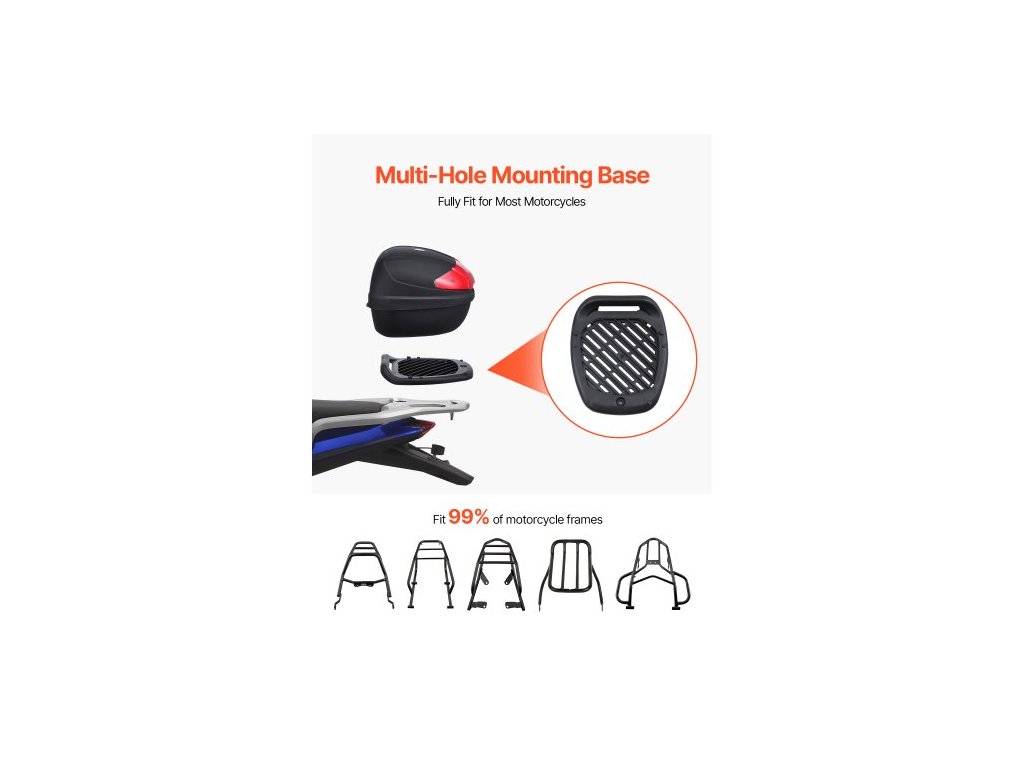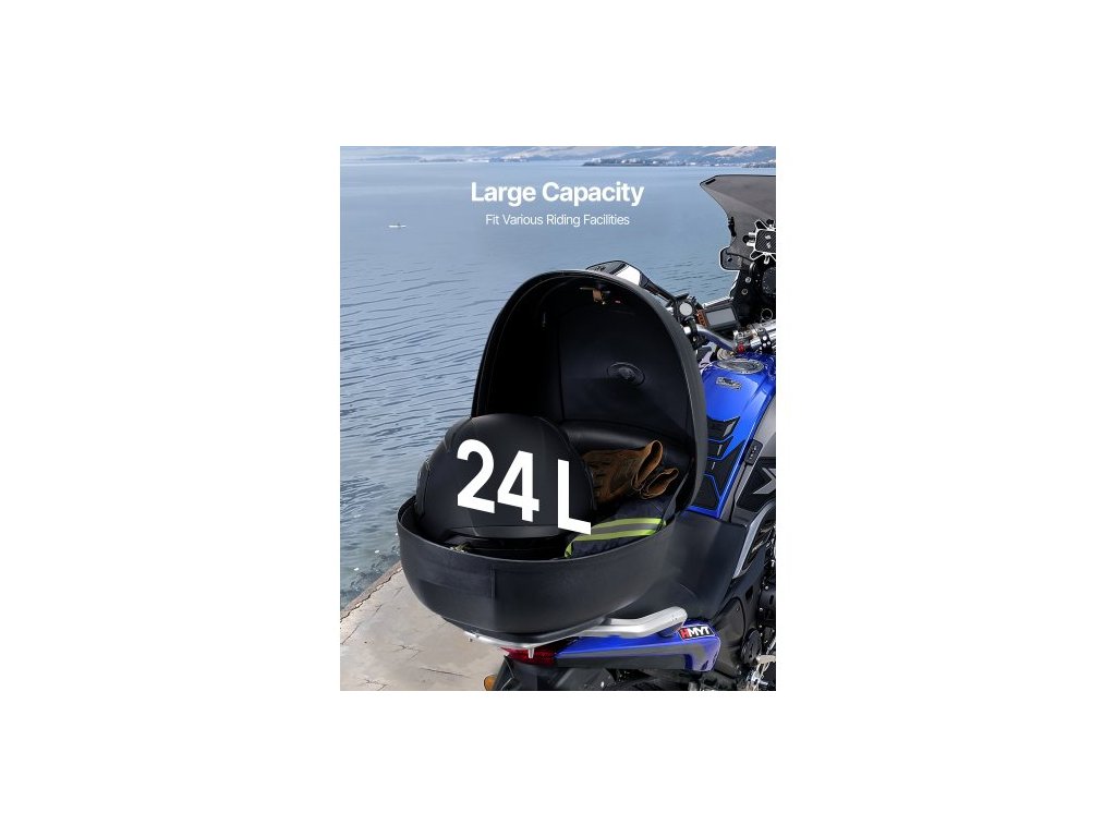 Vrchní kufr na motocykl , univerzální odolný PP materiál, zadní kufr na motocykl s reflexním panelem, 24l vodotěsný odnímatelný vrchní kufr na motocykl s víceotvorovou základnou, vhodný pro 99 % rámů motocyklů