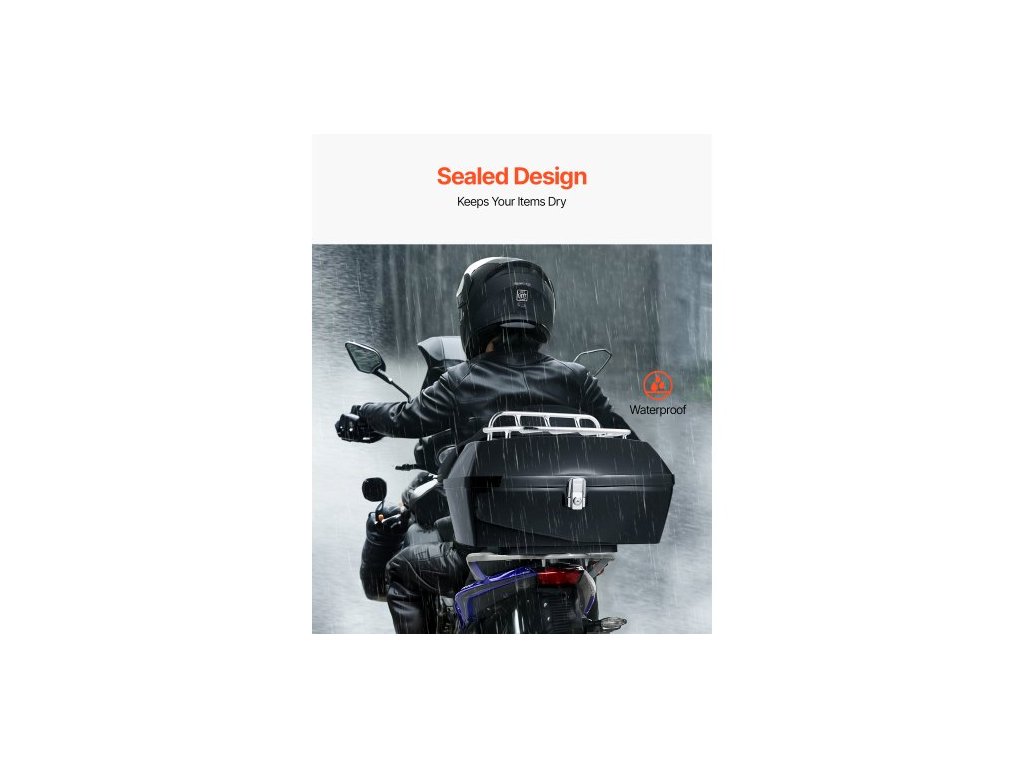 Vrchní kufr na motocykl , univerzální odolný PP materiál, zadní kufr na motocykl s reflexním panelem, 48L vodotěsný odnímatelný vrchní kufr na motocykl s víceotvorovou základnou, vhodný pro 99 % rámů motocyklů
