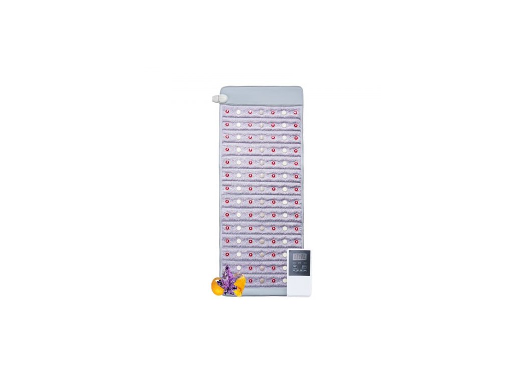 vyhřívací podložka s dalekým infračerveným zářením, ametystová vyhřívací podložka s nefritem a turmalínem, fotonové světlo 660nm a negativní ionty, podložka s horkými drahokamy 103-159°F s časovačem 0-720 min pro pas a ramena (60" x 24")