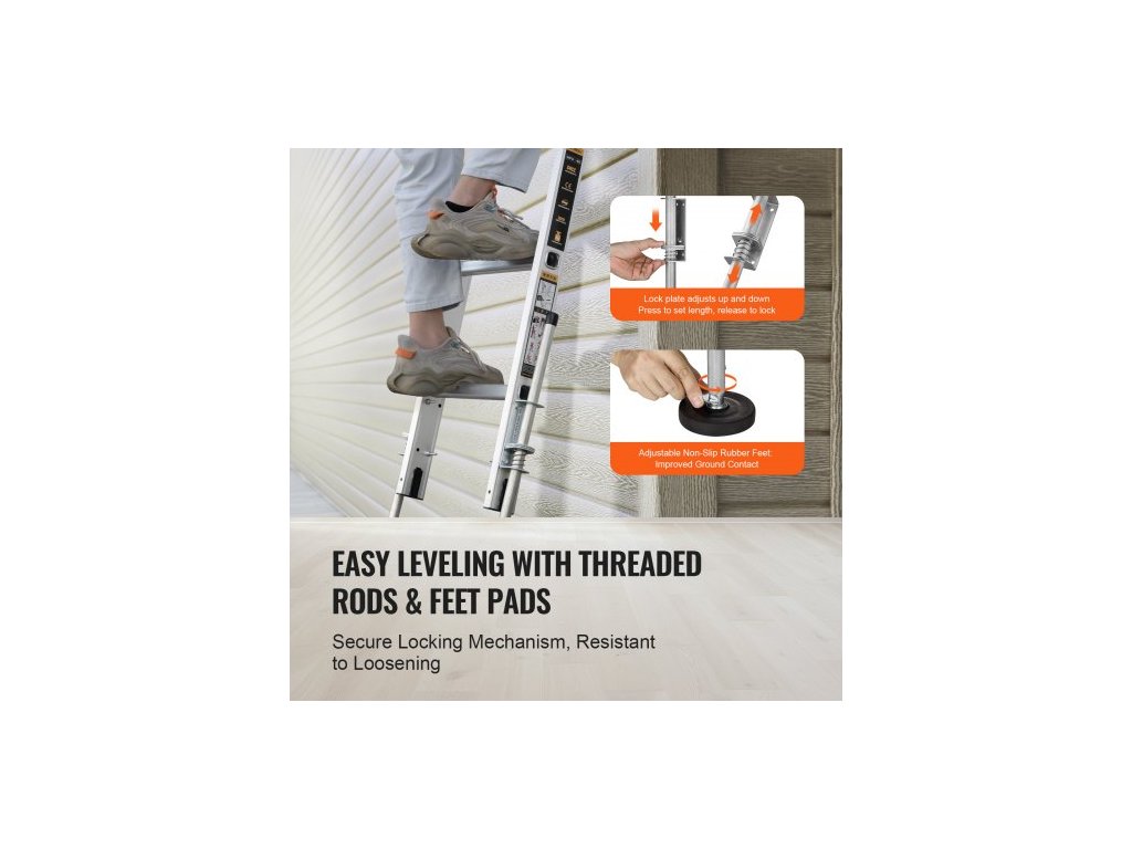 Vyrovnávač žebříků , 20palcový ocelový vyrovnávač žebříku s nosností 550 liber, násypka, stabilizátor schodišťového žebříku s úložným prostorem, snadné použití pro všechny povrchy, příslušenství pro prodlužovací žebřík na nerovný terén