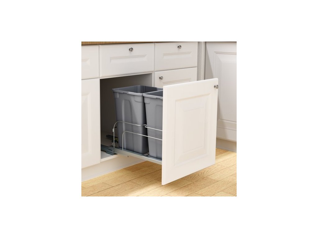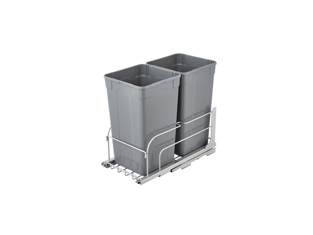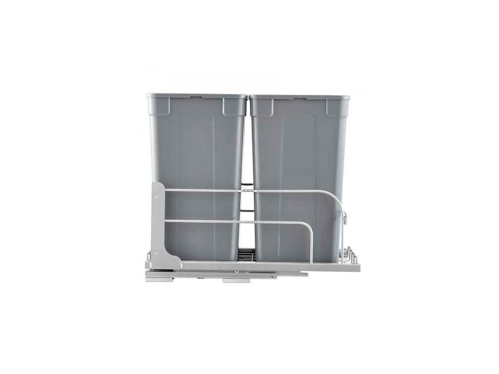 Výsuvný odpadkový koš , 27 QT x 2 Dvojitý podstavec pro kuchyňský odpad, odolný koš na tříděný odpad s dvířky a měkkým zavíráním, pro kuchyňskou linku, dřez, pod pracovní desku (šedý)