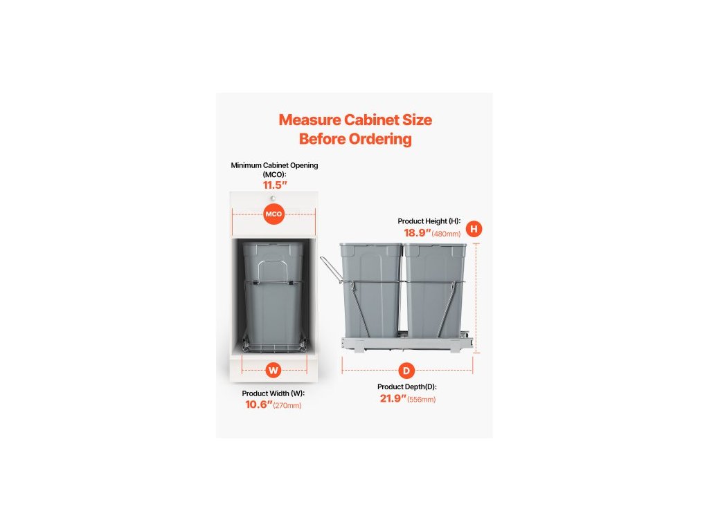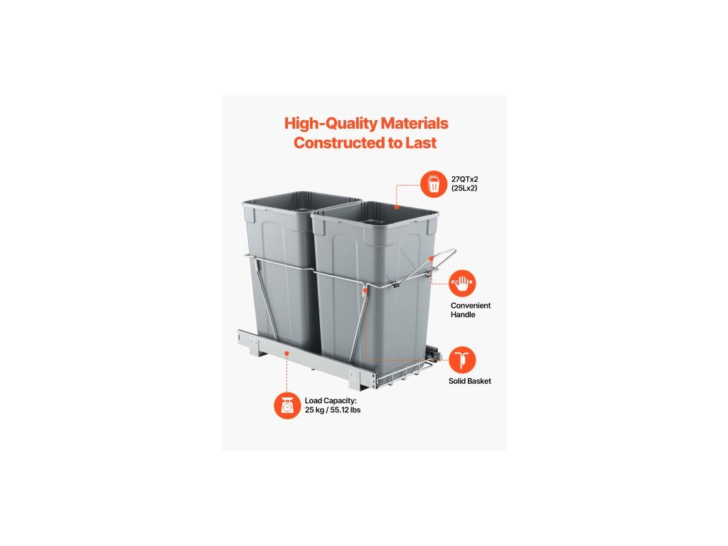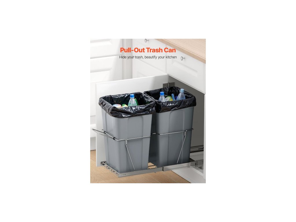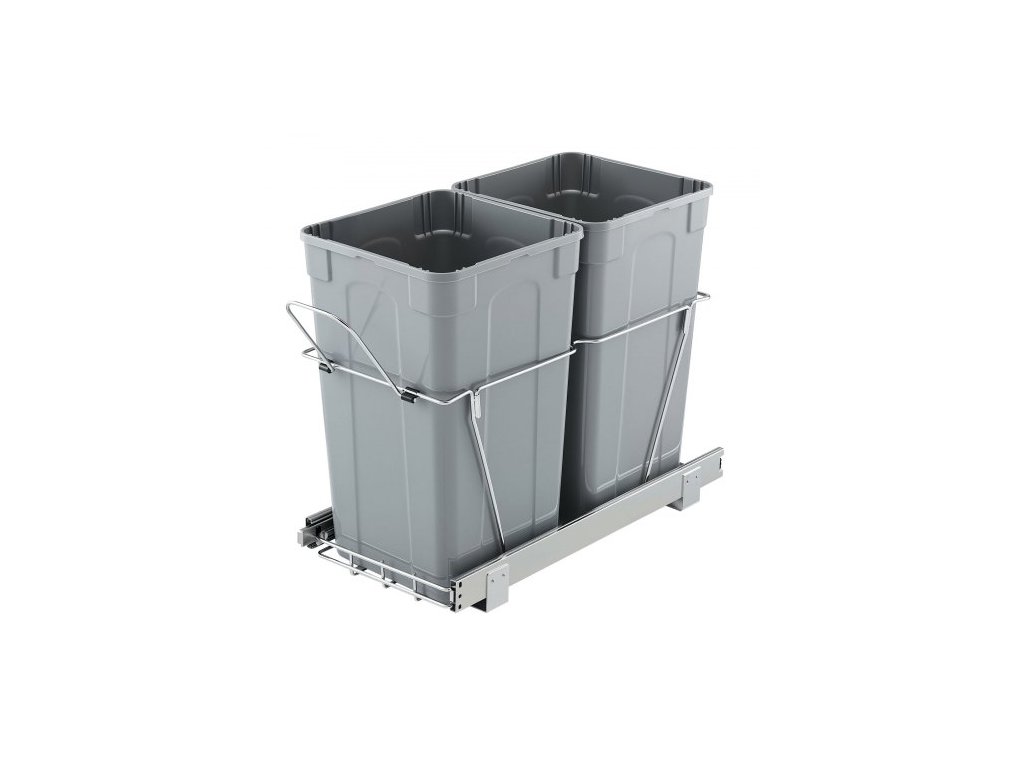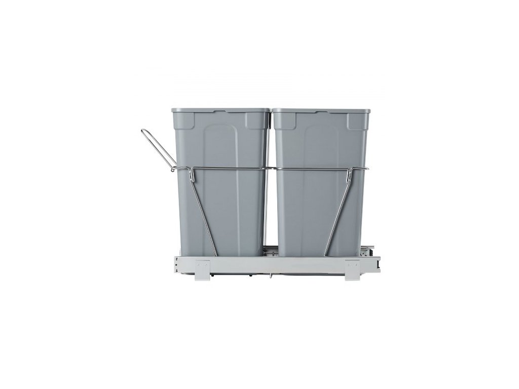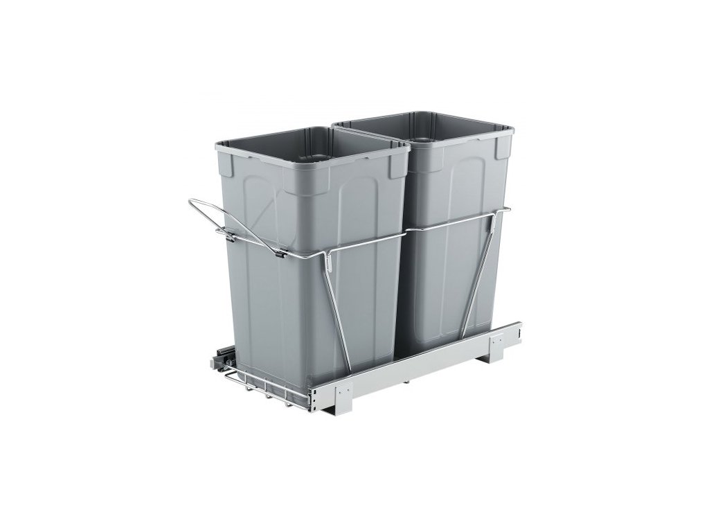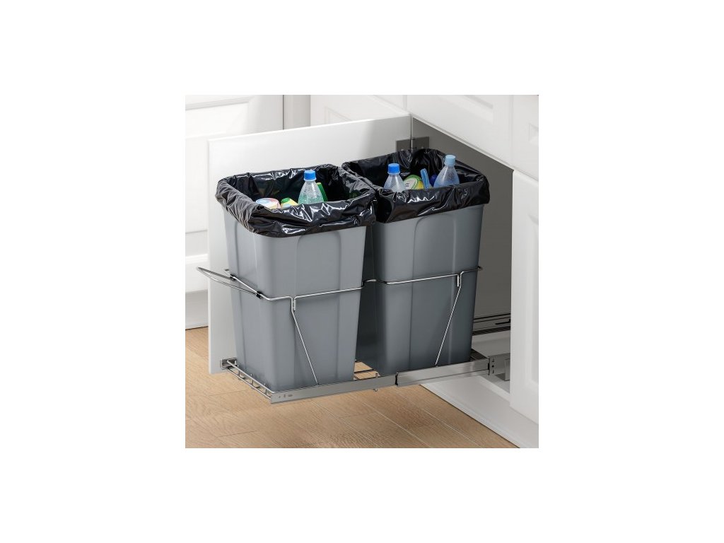 Výsuvný odpadkový koš do kuchyňských skříněk, dvojitý odpadkový koš pod dřez, kontejner na odpad pod dřez, s odolným kovovým plně výsuvným posuvným systémem a rukojetí