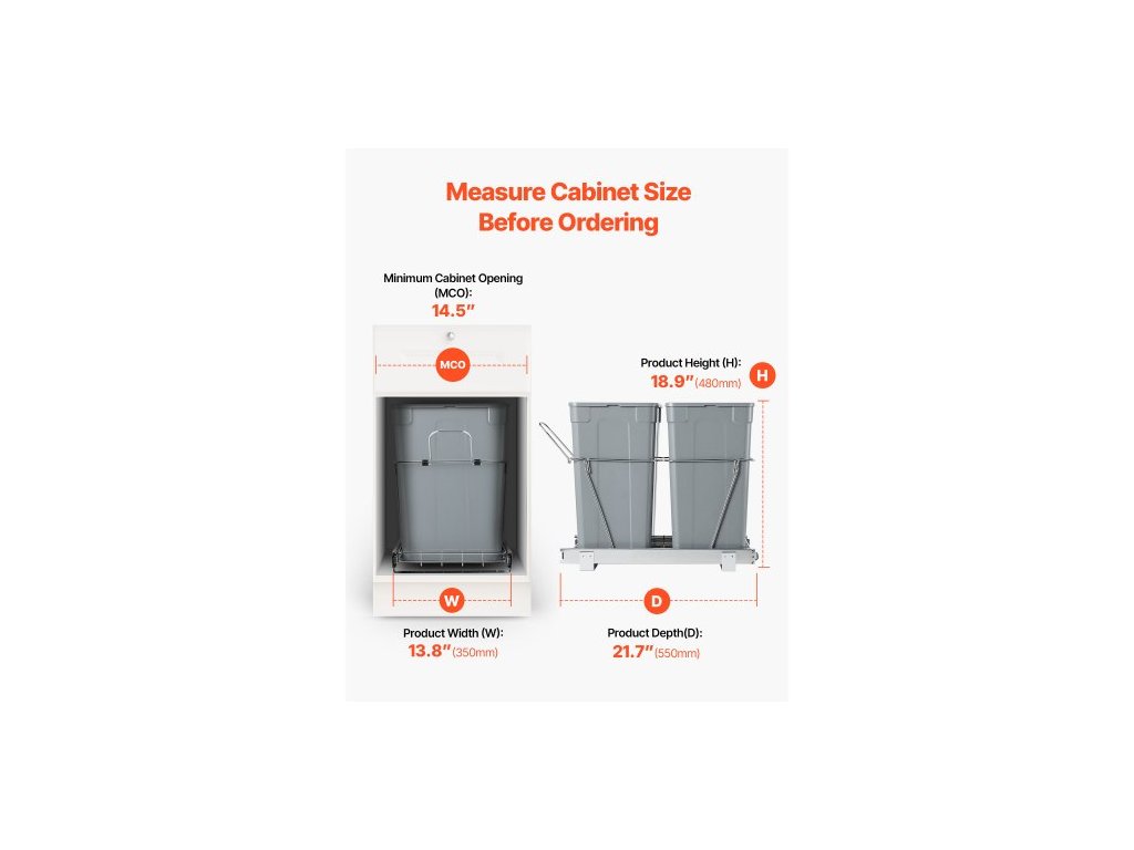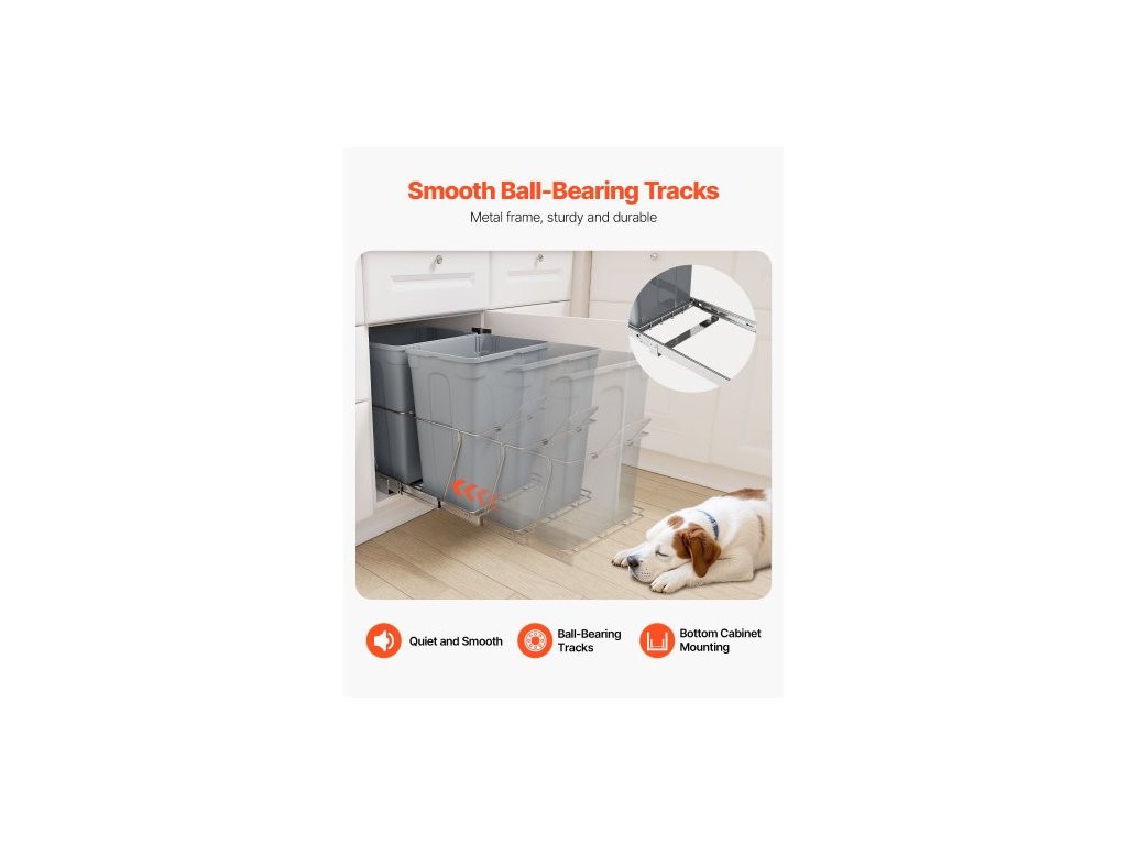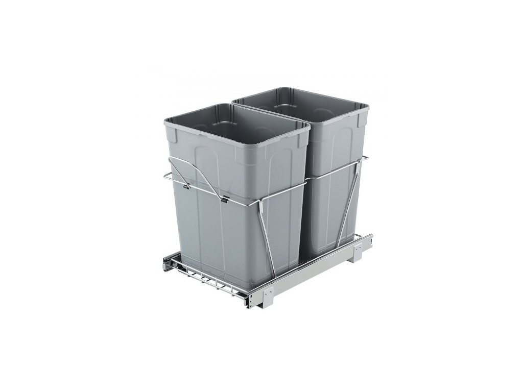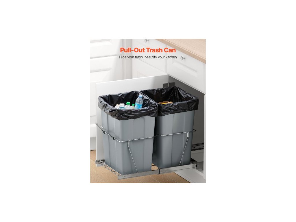Výsuvný odpadkový koš do kuchyňských skříněk, dvojitý koš na tříděný odpad pod dřez, nádoba na odpad k montáži pod dřez, s odolným kovovým plně výsuvným posuvným systémem a rukojetí