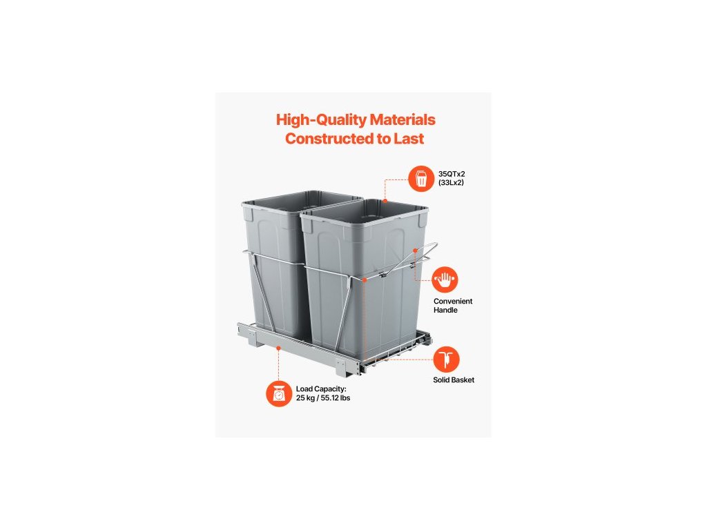 Materiál koše: PP,Rozměry výrobku: 550x350x480 mm / 21,65x13,78x18,90 palců:,Nosnost: 25 kg / 55,12 lbs,Číslo modelu výrobku: CH-LS35L02,Materiál kolejnice: Železo,Objem koše: 35QT+35QT,Hmotnost výrobku: 5,6 kg / 12,35 lbs