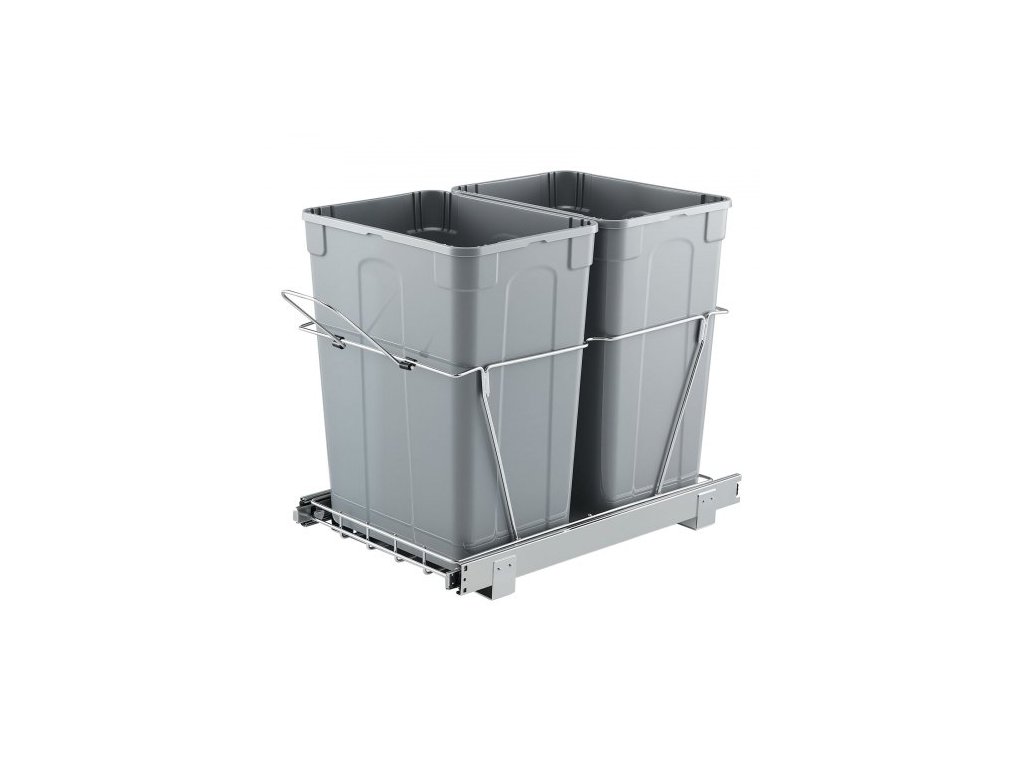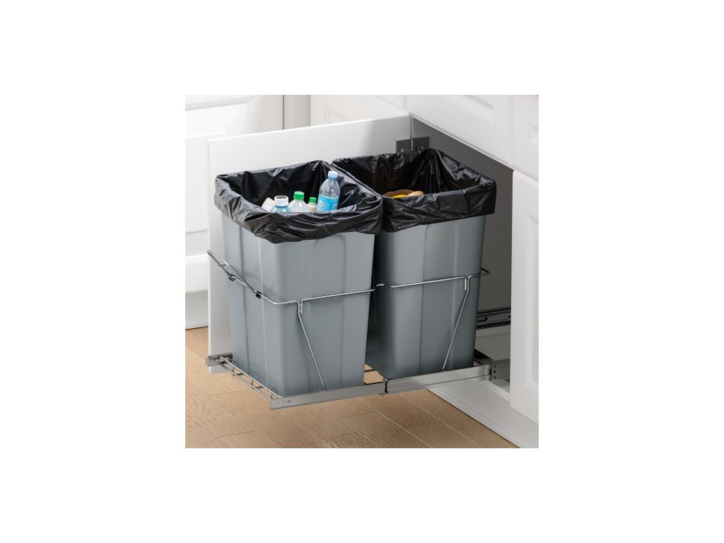 Výsuvný odpadkový koš do kuchyňských skříněk, dvojitý odpadkový koš pod dřez, nádoba na tříděný odpad k montáži pod dřez, s odolným kovovým plně výsuvným posuvným systémem a rukojetí