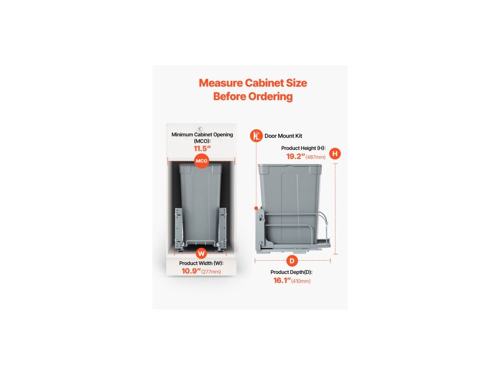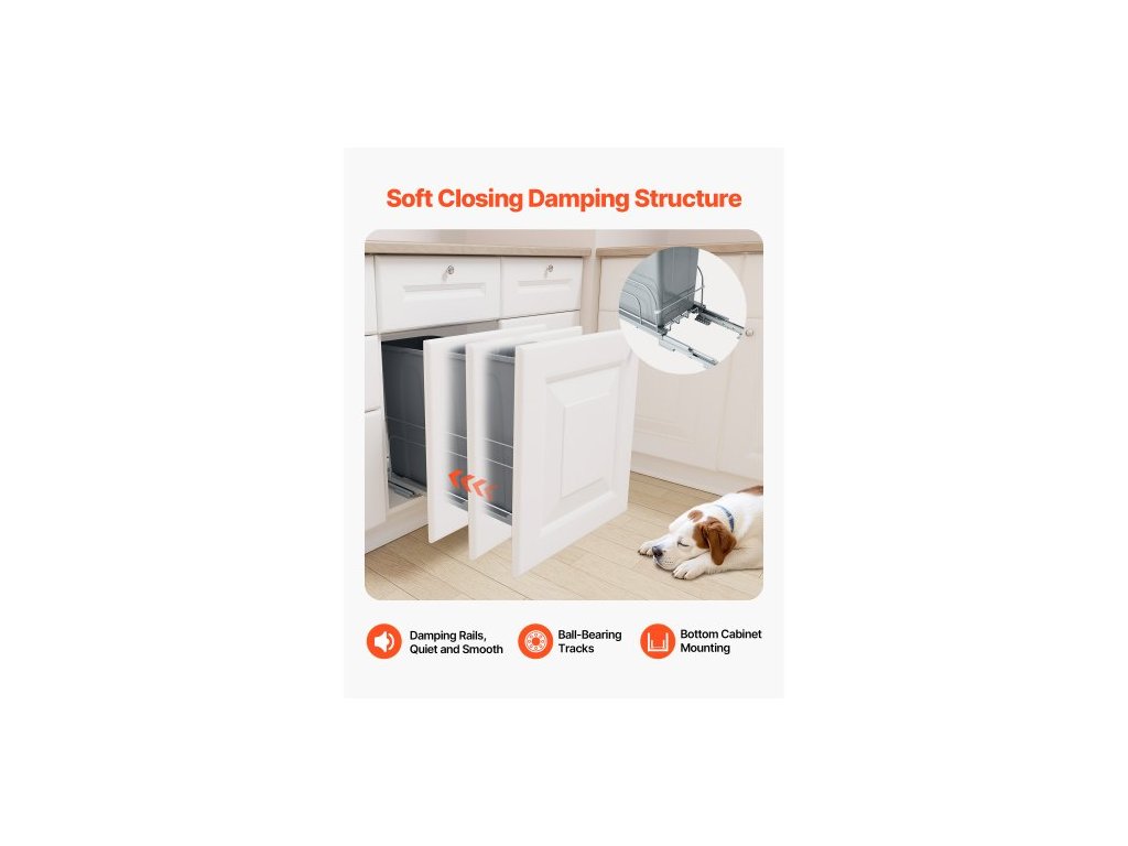 Výsuvný odpadkový koš do kuchyňských skříněk, koš na tříděný odpad, pod pracovní desku, s odolným kovovým posuvným systémem s tlumeným zavíráním a sadou dvířek, pro dřez, pod pracovní desku