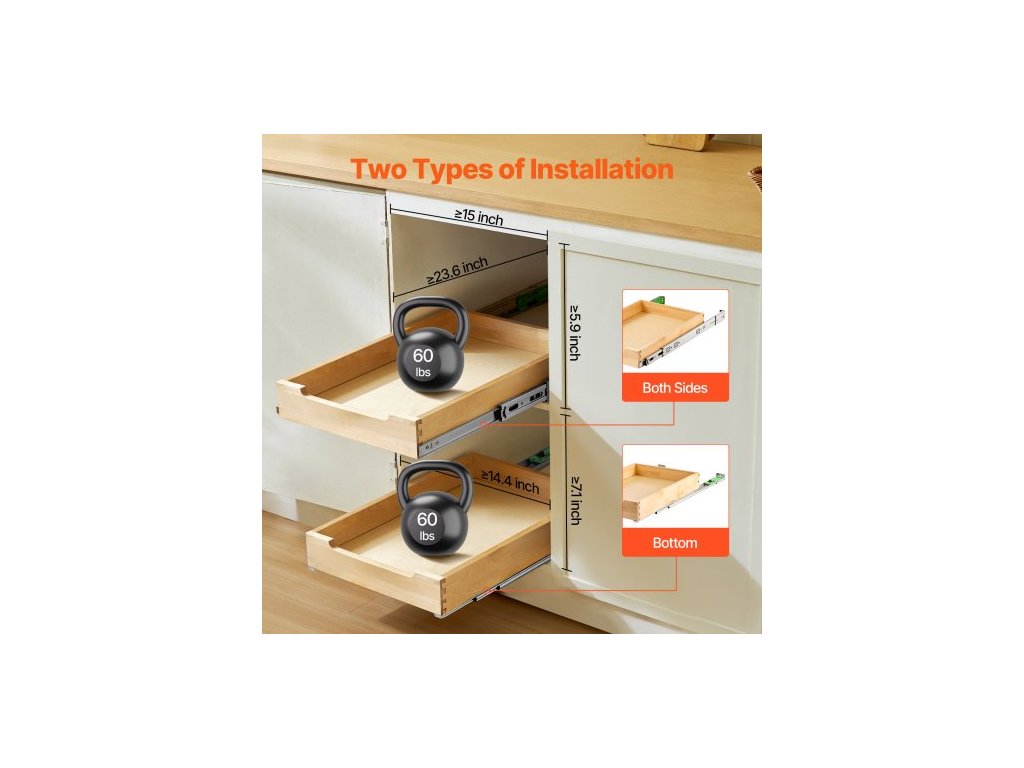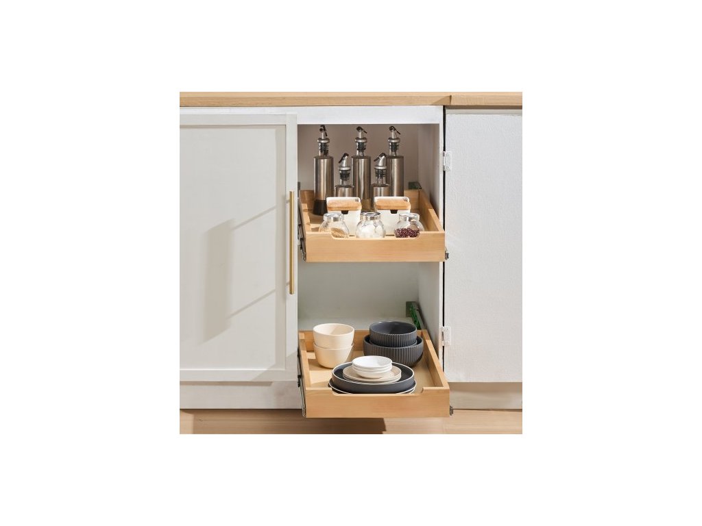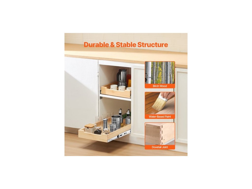 Výsuvný organizér na skříňky, zásuvka skříňky 14"Š x 21"H, měkké zavírání, vysouvací police, odolná posuvná dřevěná zásuvka, spodní a boční sestava, organizér na spodní skříňky do kuchyně, spíže a koupelny