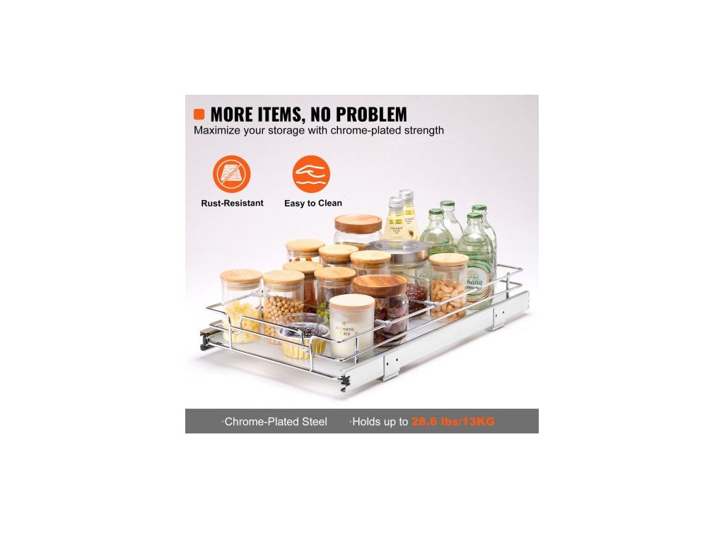 Výsuvný organizér na skříňky 12,5"Š x 21"H x 3,5"V, odolné výsuvné police do spíže, ocelové výsuvné zásuvky, úložný prostor s posuvnými zásuvkami pro domácnost pod dřezem, instalační rozměry skříňky 14"Š x 22"H x 7"V