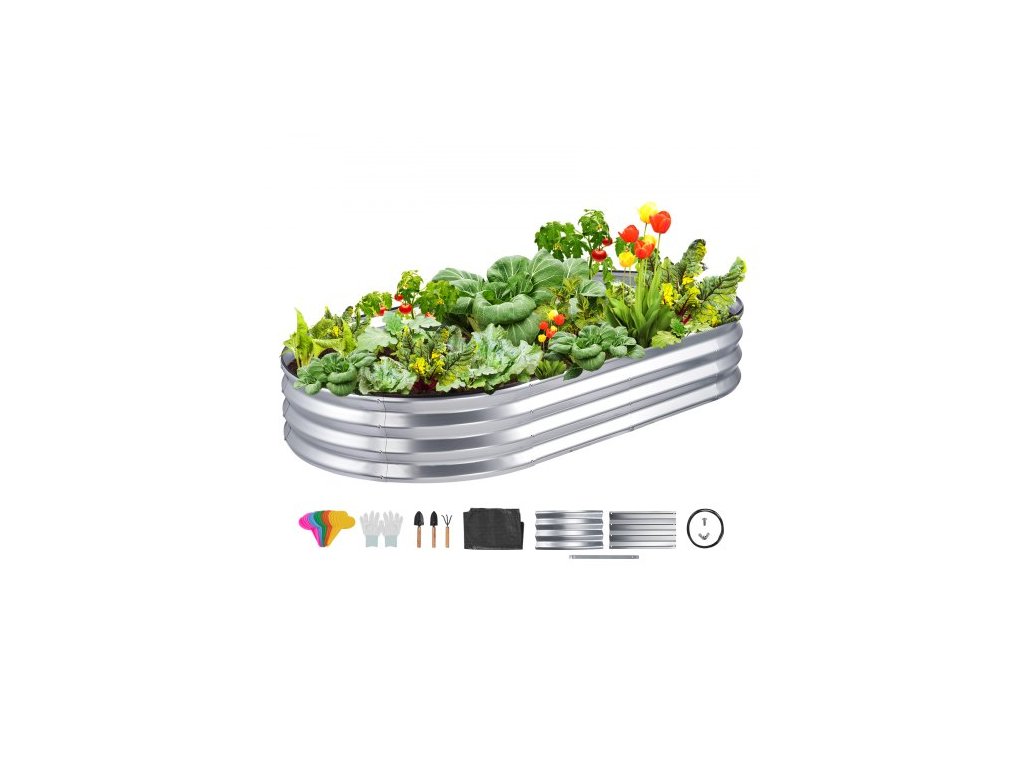 Vyvýšený záhon , pozinkovaný kovový květináč 71,9 x 36,4 x 11 palců, venkovní květináče s otevřeným dnem, pro pěstování květin/zeleniny/bylin na zahradě/terase/balkonu, stříbrná