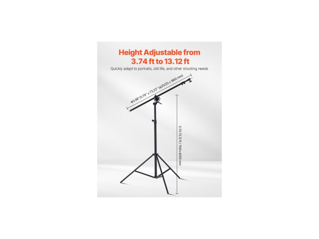 Nastavení výšky: 1140–4000 mm,Rozměry ramene: ?25 mm/20 mm x 1860 mm,Typ stojanu: Stativový stojan s ramenem,Nosnost ramene: 1 kg (Poznámka: Pokud je podpěrný bod ve středu ramene, konec unese až 1,2 kg) / 1 kg),Číslo modelu položky: SH-LS-020,Nosnost středového sloupku: 6,61-11,02 lbs / 3-5 kg,Šroub adaptéru se závitem pro rameno výložníku: 1/4 palce + 3/8 palce,Rozměry výrobku: 47,24 x 47,24 x 44,88 palce - 144,33 palce / 1200 x 1200 x 1140 mm - 3666 mm,Čistá hmotnost: 6,57 lbs / 2,98 kg,Výška stojanu: 12,8 ft / 3900 mm,Hlavní materiál: Hliníková slitina + železo