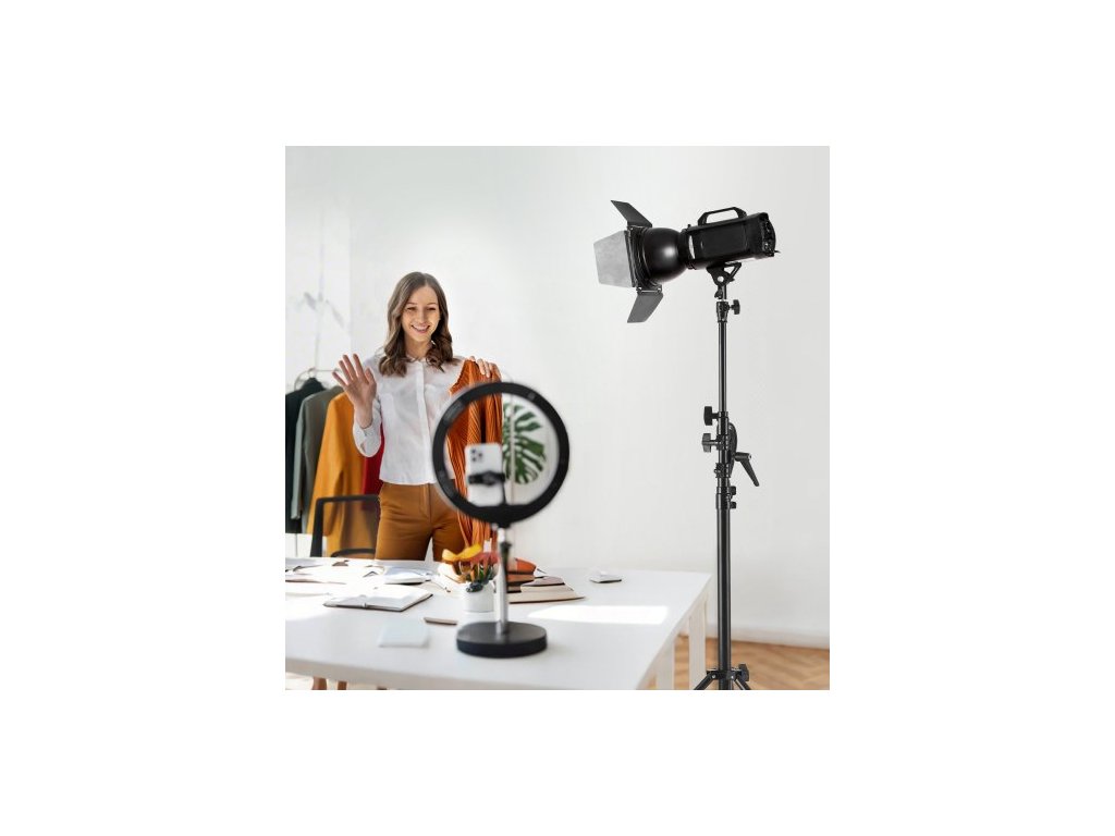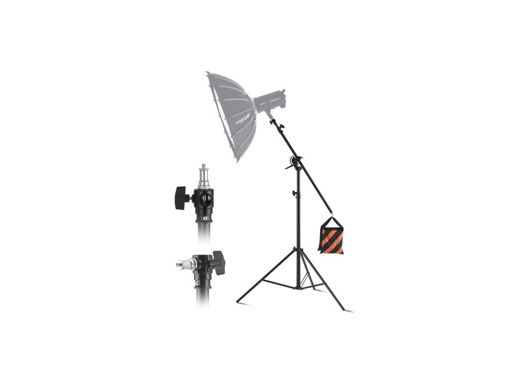 Vzduchový hliníkový stojan na světlo , maximální výška 390 cm, nastavitelný fotografický stojan s ramenem, pytel s pískem, maximální zatížení 5 kg, šroub 1/4 palce pro softbox, studiový blesk, deštník, kruhové světlo